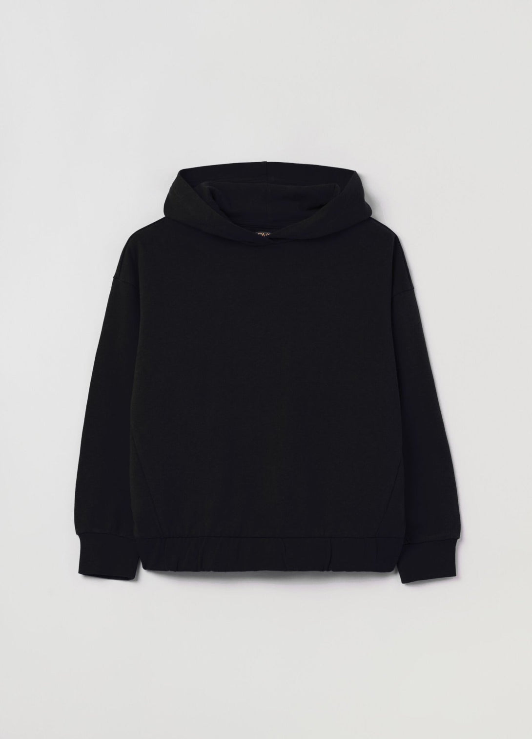 بلوزة بلون موحد من الصوف القطني بنسبة 100% مع غطاء للرأس. مقاس كبير بحافة مطاطية.