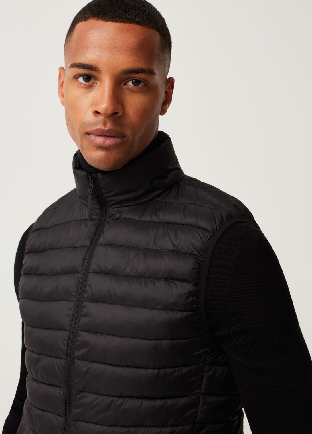 جيليه مبطن وخفيف للغاية. رقبة عالية. جيبان عموديان. سحّاب كامل للإغلاق.