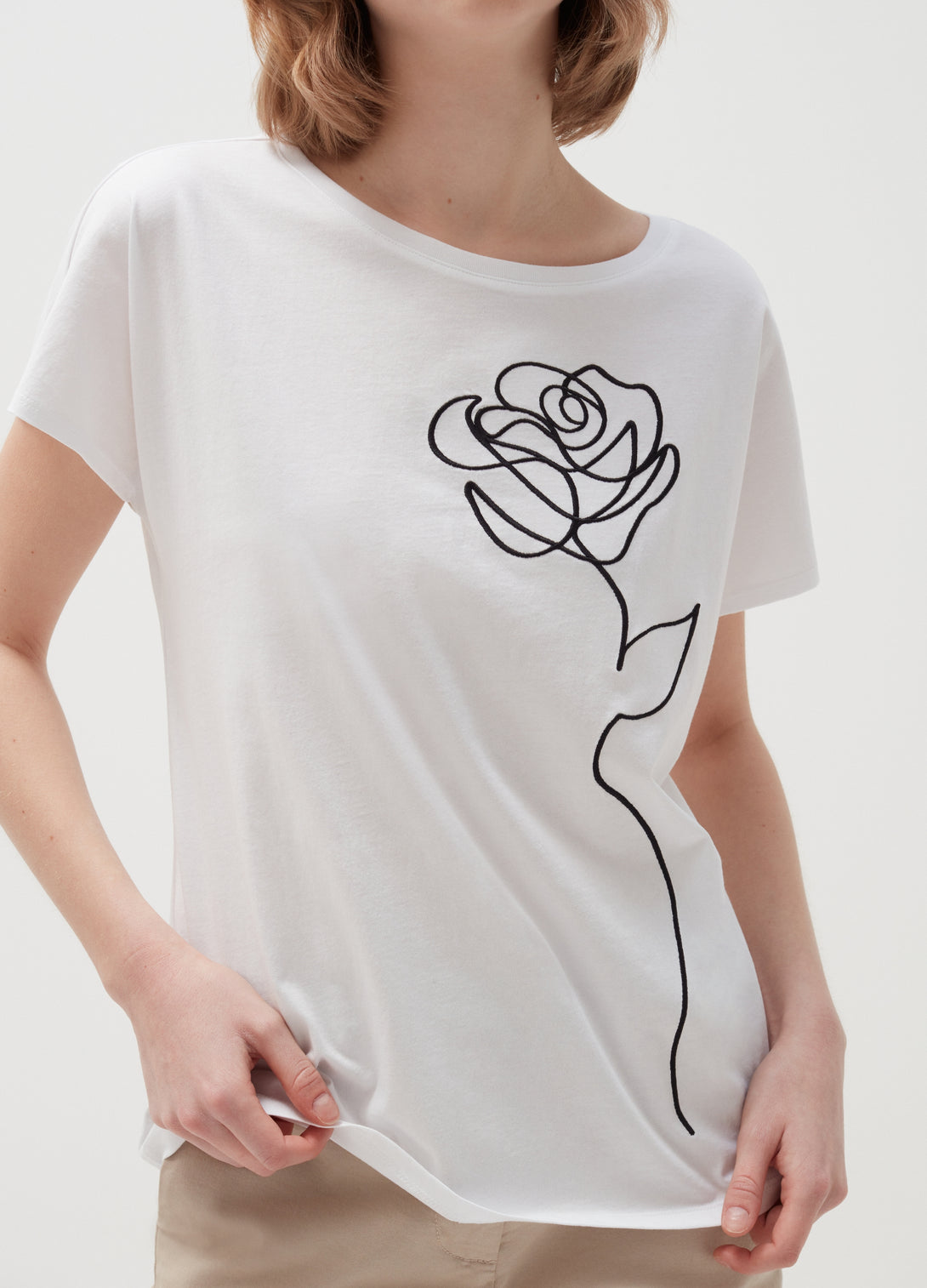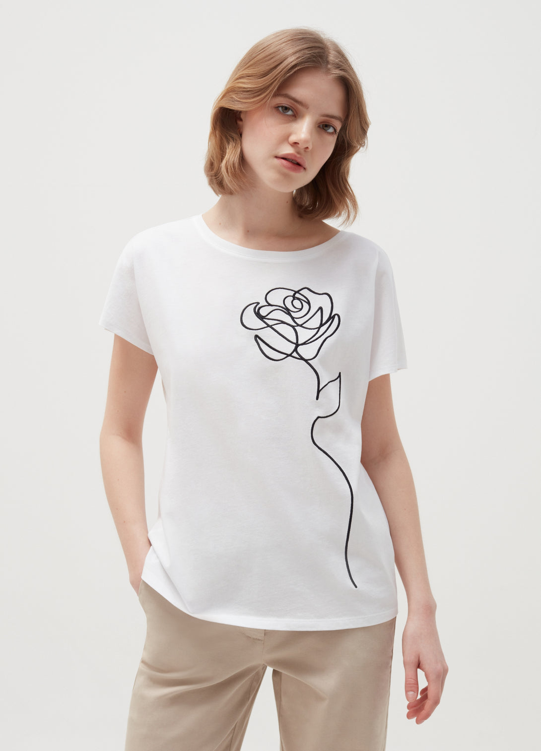 تي شيرت نسائي مطبوع عليه وردة من OVS