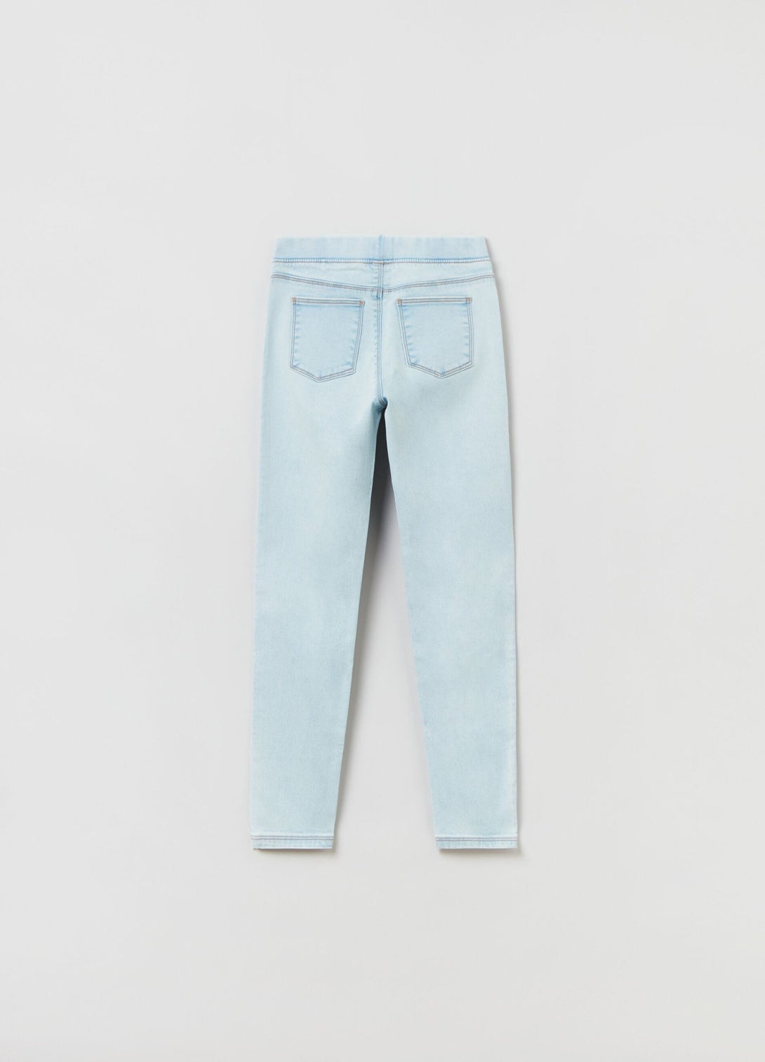 بنطال جينز من مزيج القطن والفيسكوز المطاطي. خصر مطاطي. جيبان كافيان في الأمام وجيبان خارجيان في الخلف.