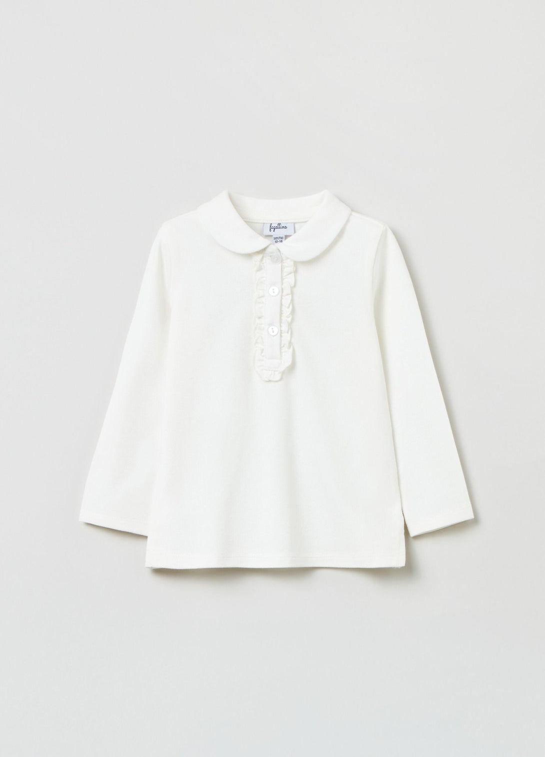 قميص بولو من قطن البيكيه المطاطي بأكمام طويلة. ياقة مستديرة. زخرفة زخرفية وأزرار للإغلاق.