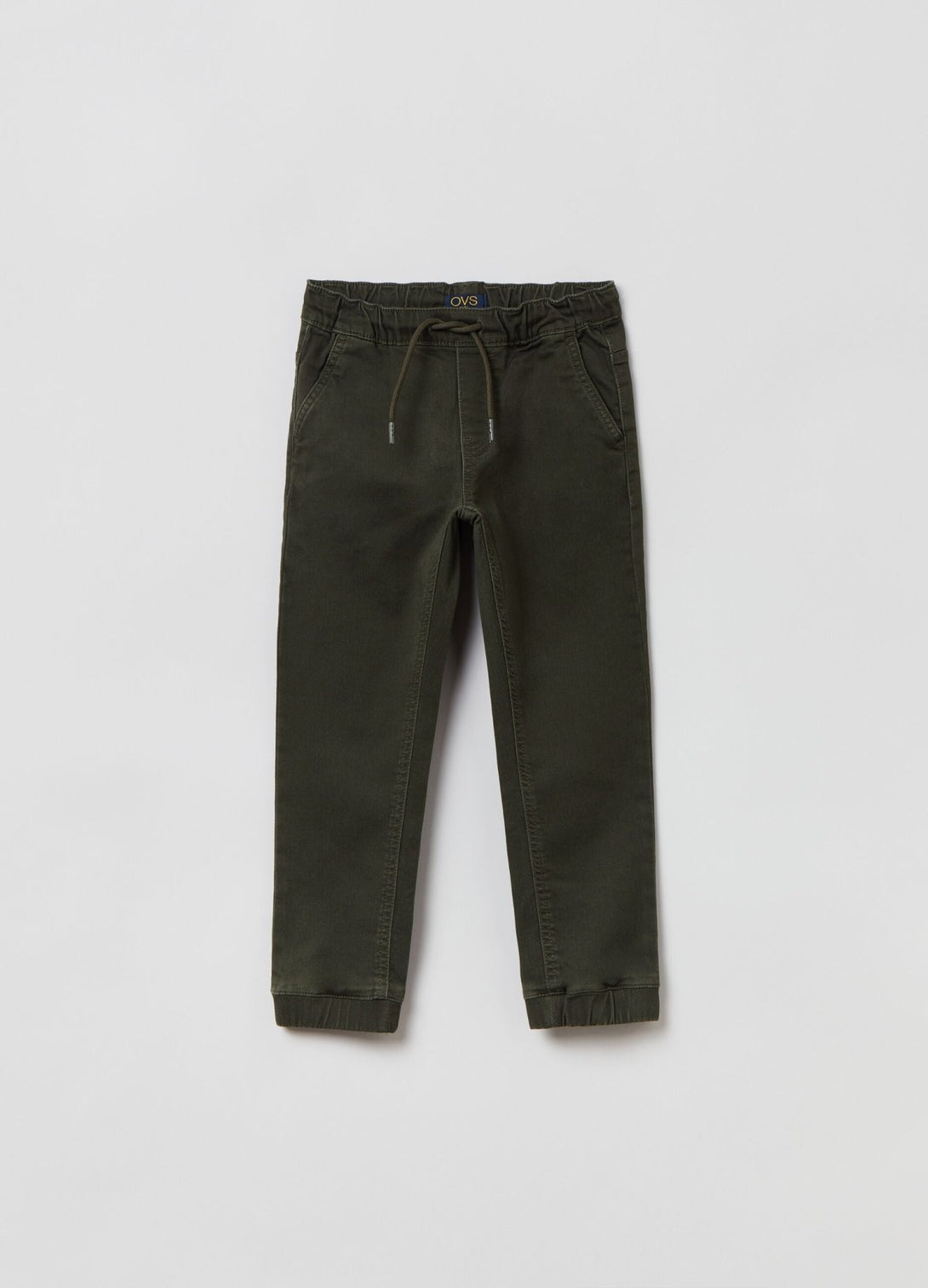بنطال جينز فرينش تيري (بطانة غير مصقولة) من مزيج القطن القابل للتمدد. خصر مطاطي مع رباط. جيبان مائلان وجيبان خارجيان في الخلف. كاحلين مطاطيين.