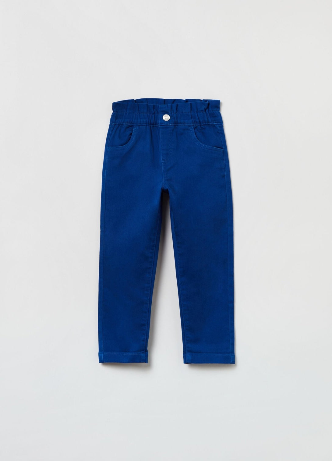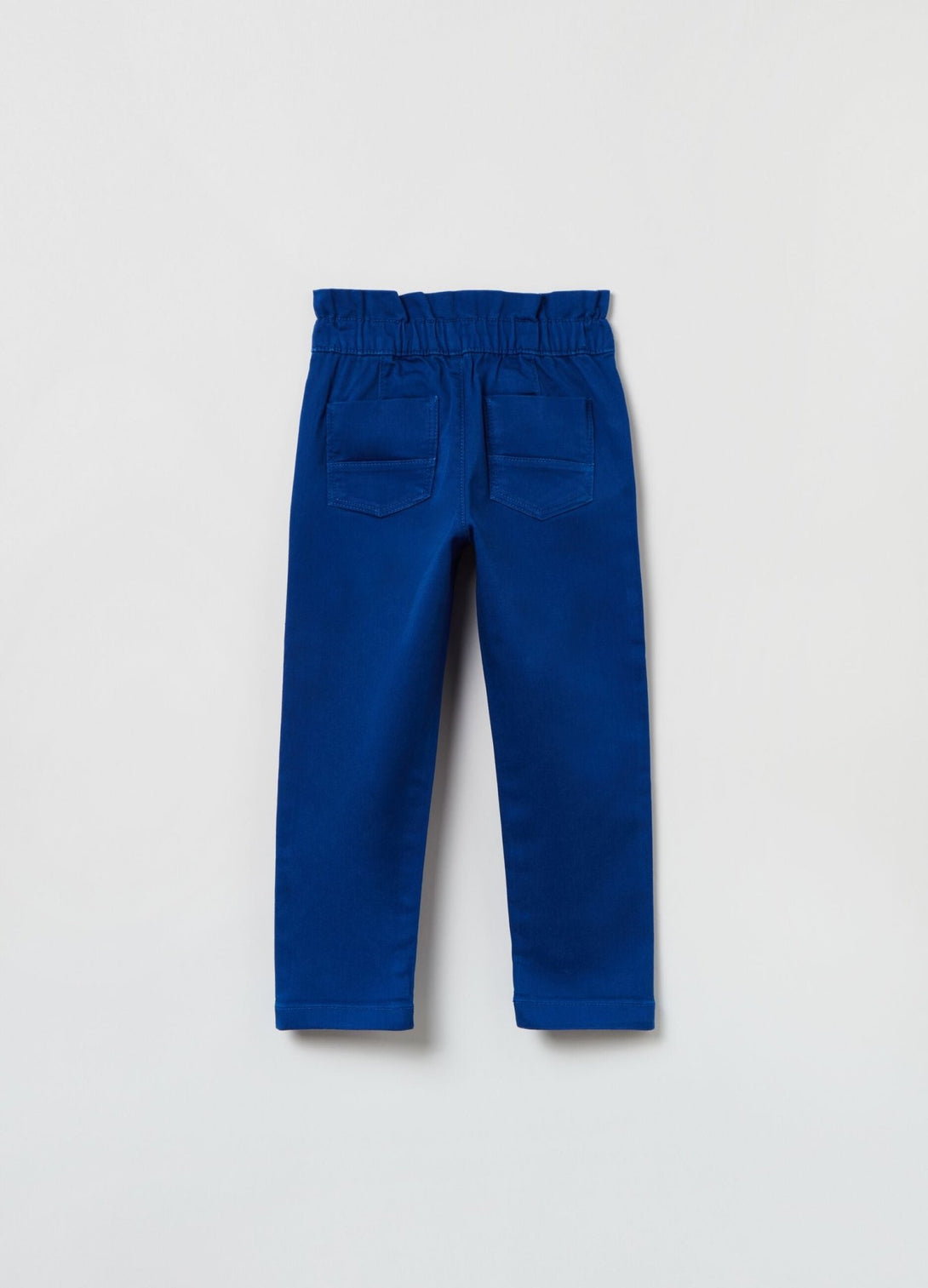 بنطال رياضي بكيس ورقي من مزيج القطن القابل للتمدد. خصر مطاطي مزيّن بكشكش. جيبان جانبيان داخليان وجيبان خارجيان في الخلف. إغلاق بواسطة زر كبس.