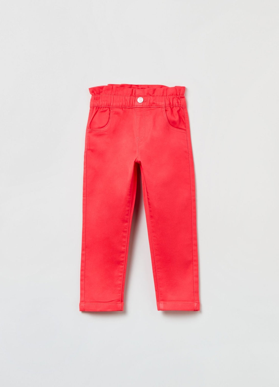 بنطال رياضي بكيس ورقي من مزيج القطن القابل للتمدد. خصر مطاطي بكشكش. جيبان جانبيان داخليان وجيبان خارجيان في الخلف. إغلاق بواسطة زر كبس.
