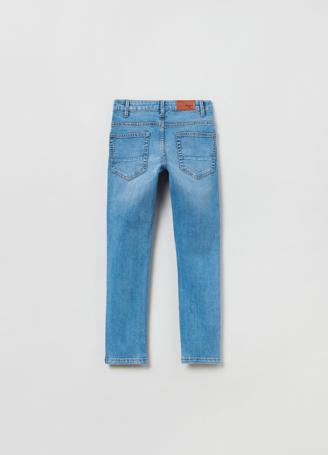 بنطال جينز ذو تصميم عادي بمظهر غير مصبوغ من مزيج القطن. خمسة جيوب. إغلاق بواسطة سحّاب وزر.