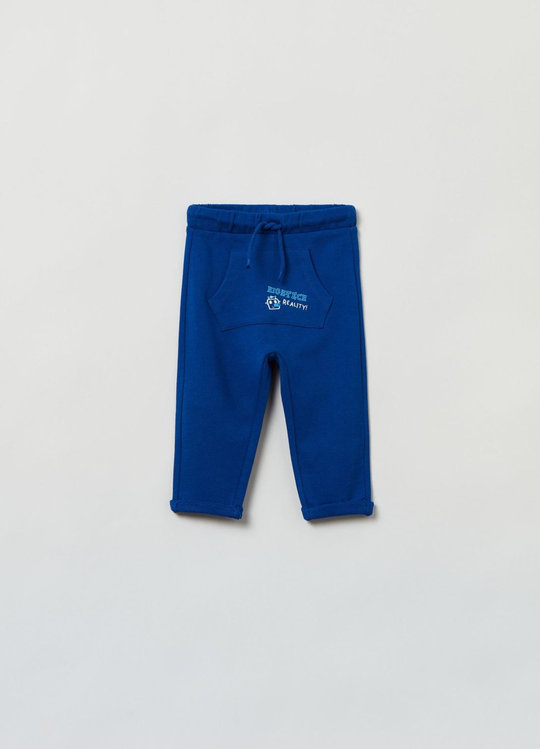 بنطال رياضي مصنوع بنسبة 100% من القطن الفرنسي (بطانة من الصوف غير المصقول) مع رباط. جيب جيب مطبوع عليه روبوت وحروف.