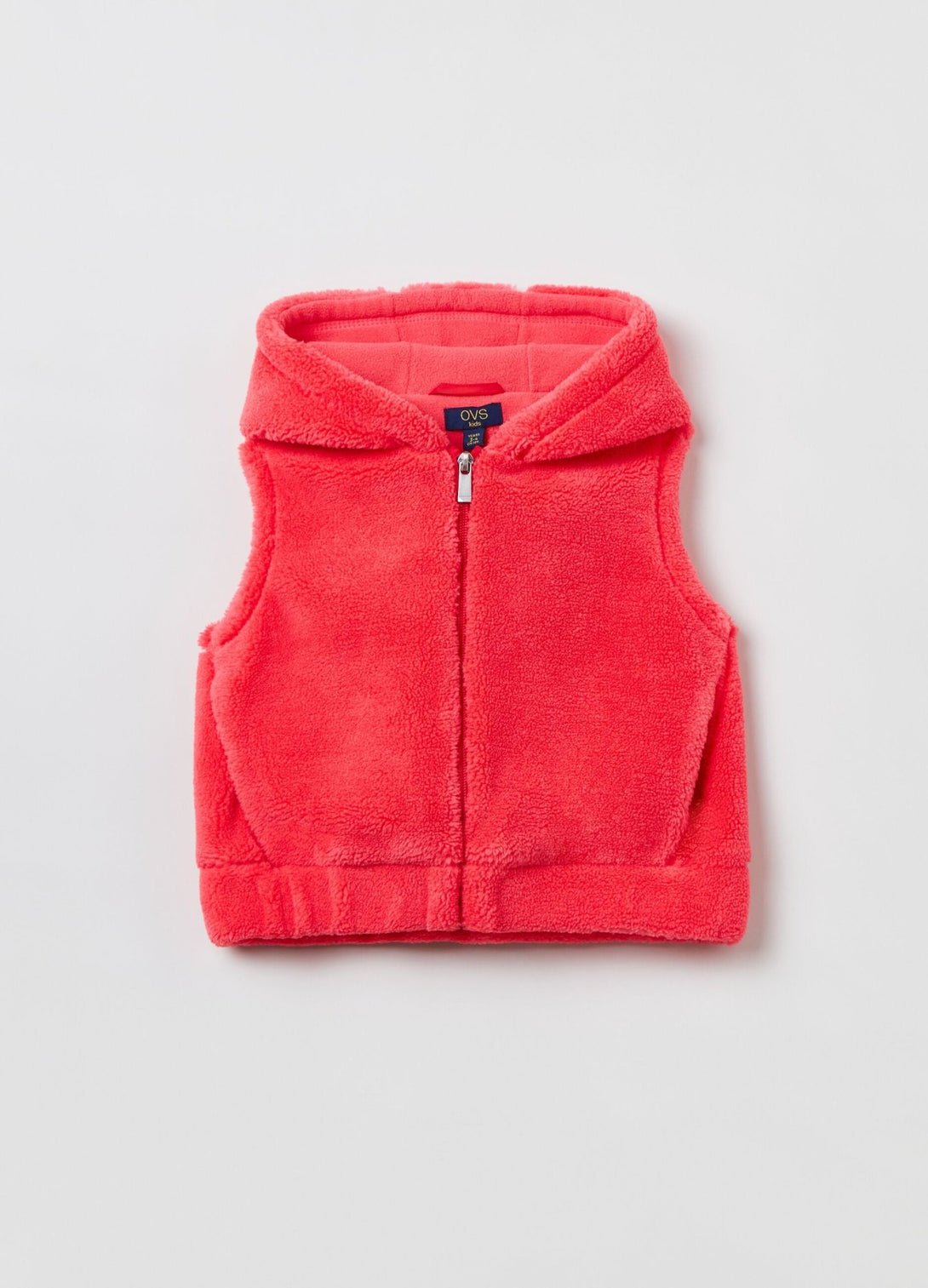 جيليه بسحّاب كامل من الشيربا مع غطاء للرأس. الجزء الداخلي مصنوع من الصوف.