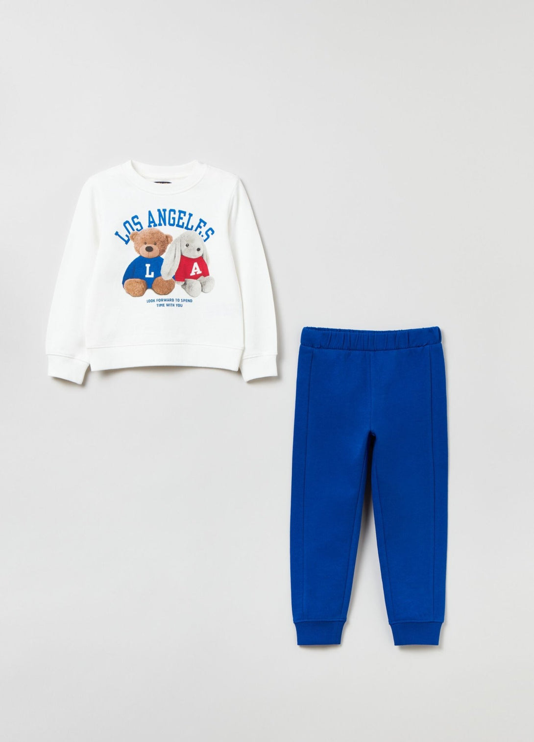مجموعة الركض فرينش تيري المصنوعة من القطن بنسبة 100% (بطانة غير مصقولة). بلوزة بتصميم مخملي مطبوع وحروف وياقة مستديرة. تقليم مضلع. بنطال رياضي بخصر مطاطي وأساور عند الكاحل.