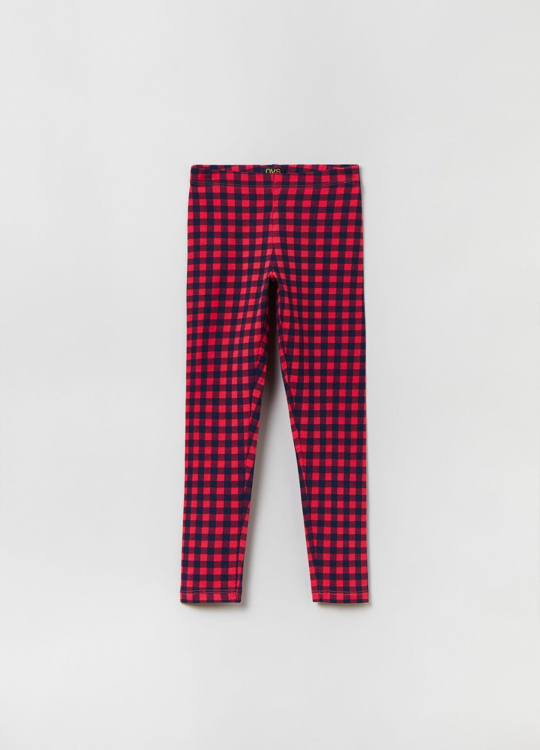 بنطال ضيق من القطن القابل للتمدد مع طباعة مربعات. خصر مطاطي.