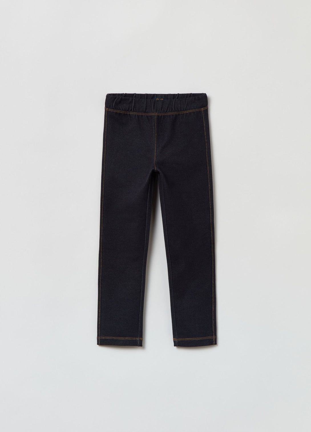جينز من مزيج القطن القابل للتمدد مع نسج قطري. خصر مطاطي.