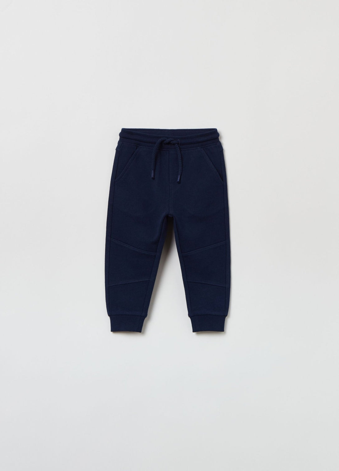 بنطال رياضي قطيفة مصنوع من القطن بنسبة 100% مع رباط خصر مضلع وكاحلين. جيبان مائلان.
