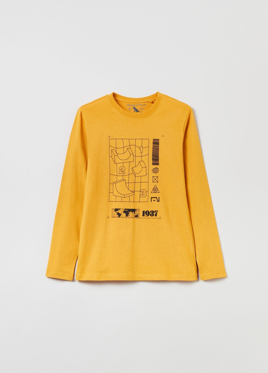 تي شيرت مصنوع من القطن بنسبة 100% بأكمام طويلة. رقبة دائرية مضلعة. طبعة باركور على الأمام.