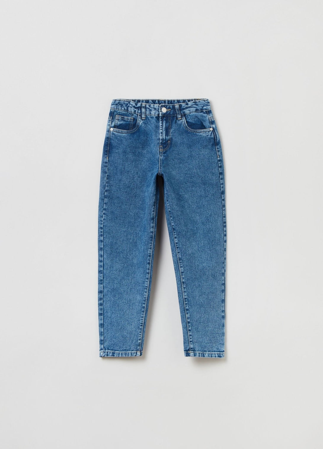 بنطال جينز مناسب للأمهات مصنوع من القطن بنسبة 100% مع معالجة بالغسيل الحمضي. خمسة جيوب. إغلاق بواسطة سحّاب وزر.