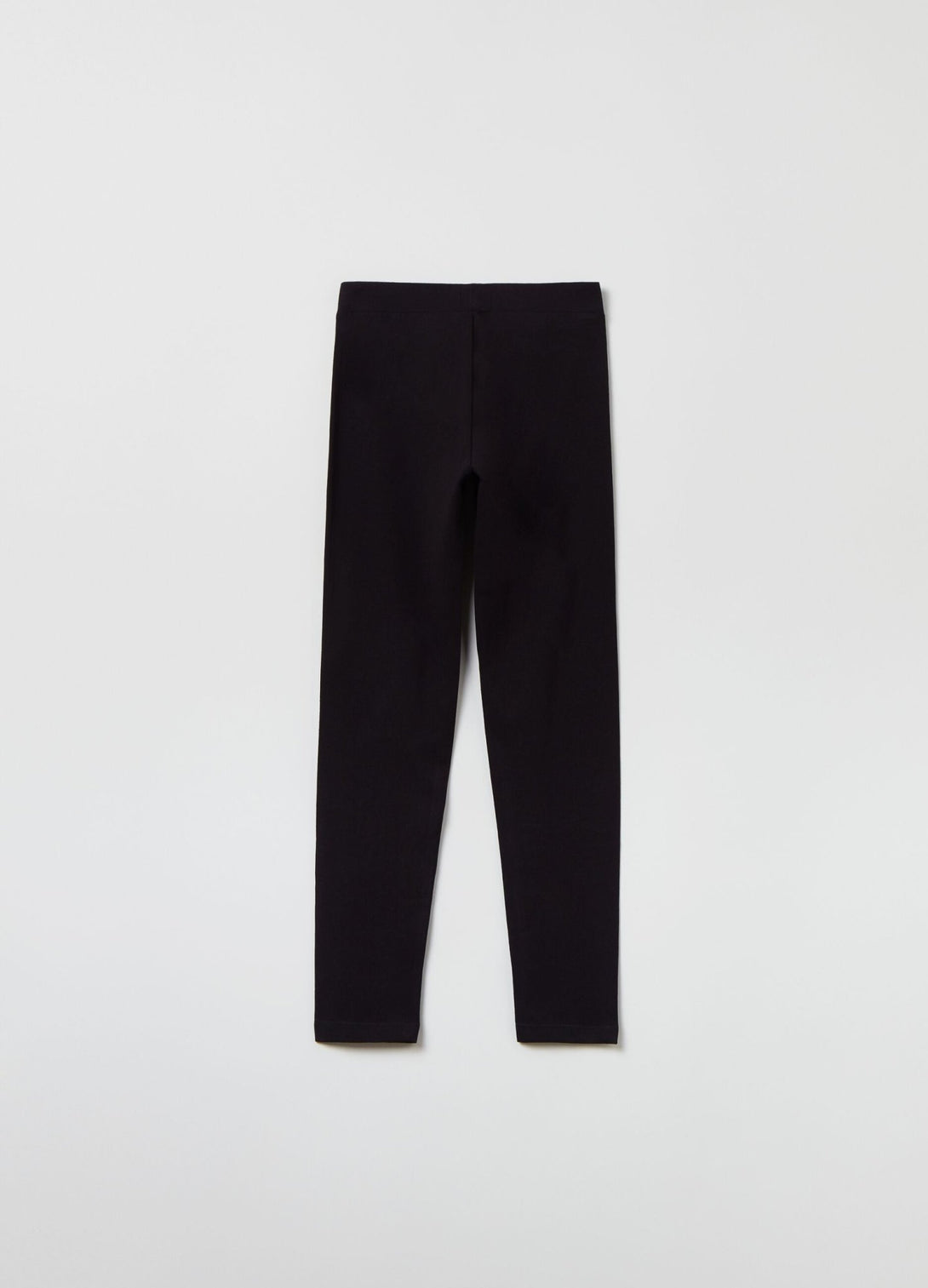 بنطال ضيق من القطن القابل للتمدد مع حزام مطاطي. حروف مطبوعة على الحافة.