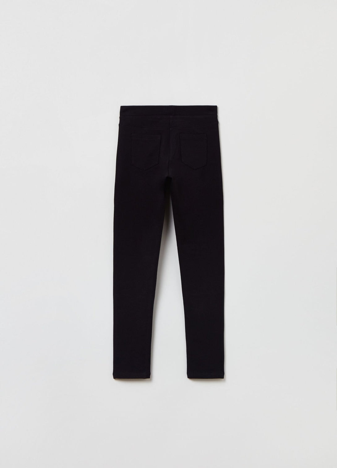 بنطال قطني قابل للتمدد مع حزام مطاطي. جيبان كافيان في الأمام وجيبان خارجيان في الخلف.