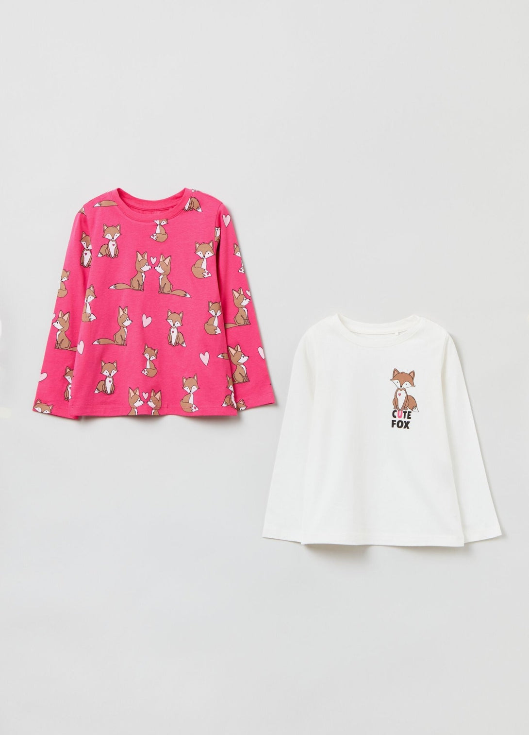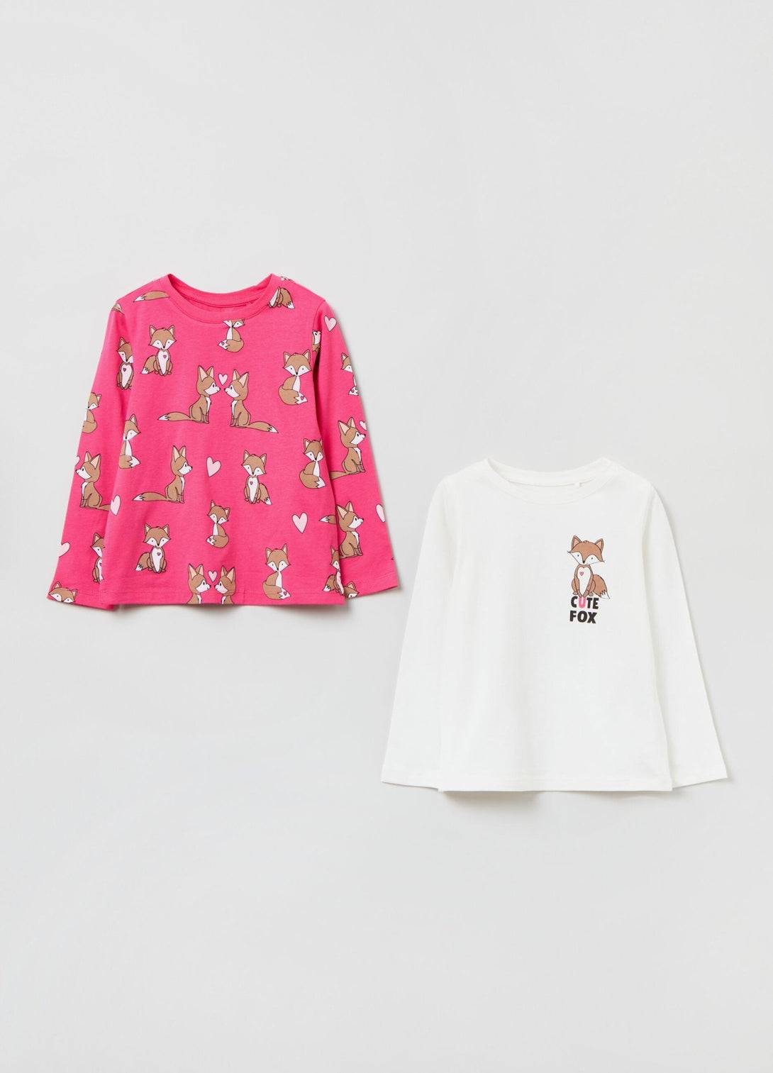 مجموعة مكونة من قميصين 100% من القطن بأكمام طويلة. رقبة مستديرة. تي شيرت واحد بطبعة ثعالب بالكامل وقميص واحد بطبعة ثعالب وحروف على الجانب.