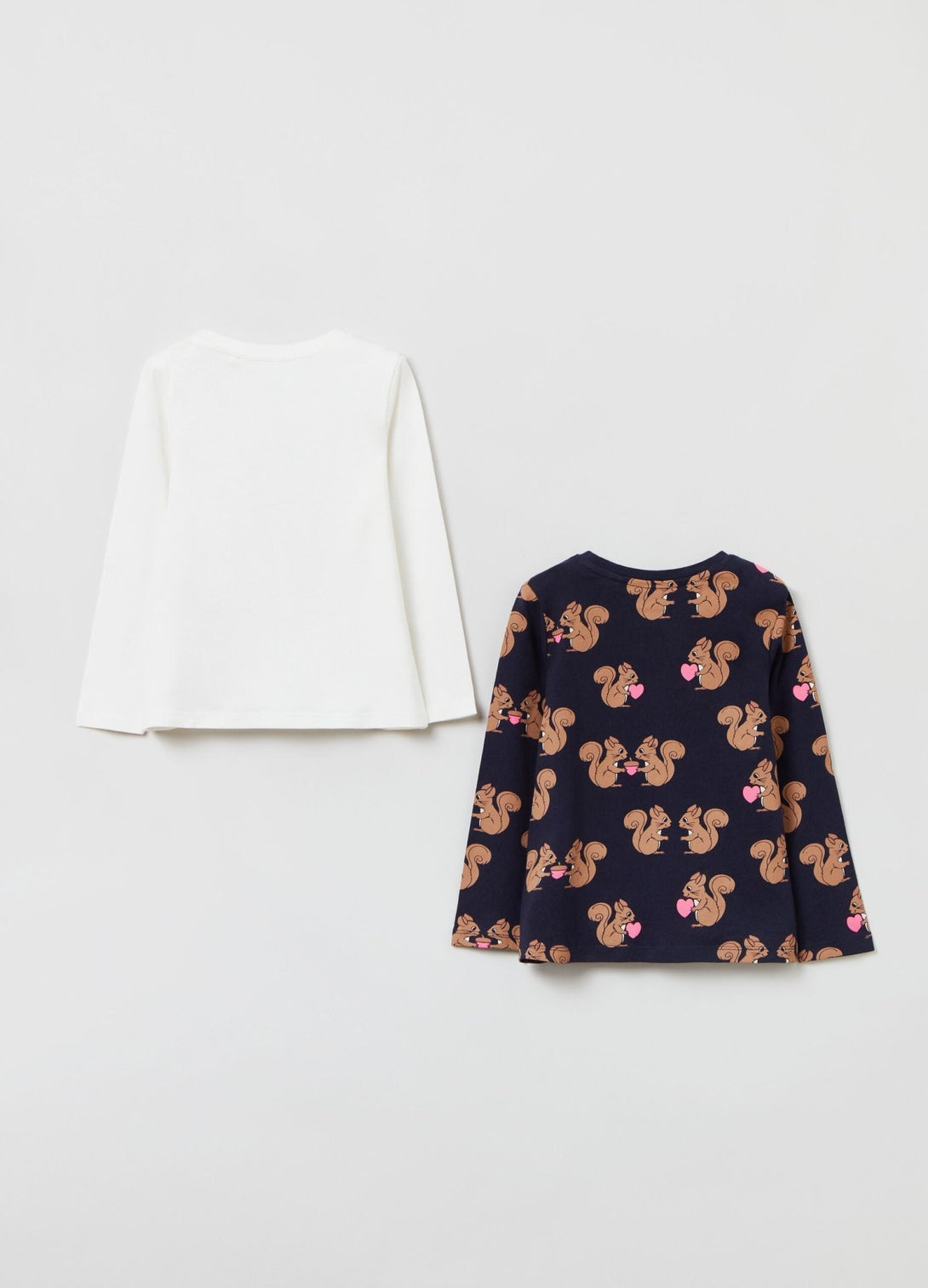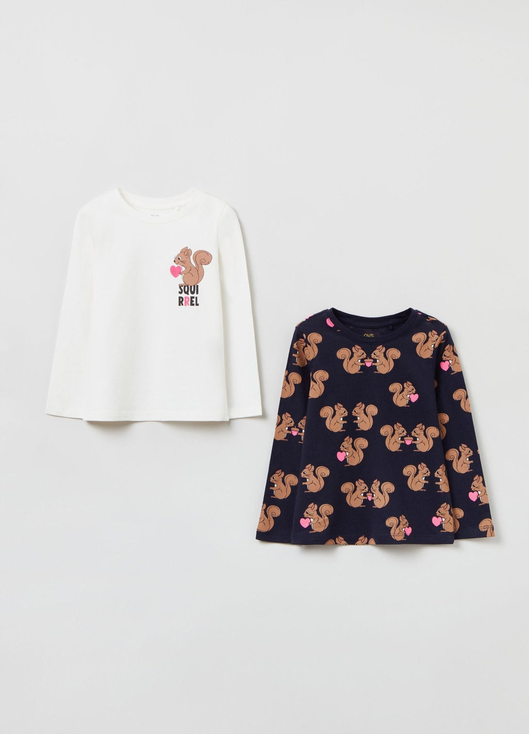 مجموعة مكونة من قميصين 100% من القطن بأكمام طويلة. رقبة مستديرة. تي شيرت واحد بطبعة السناجب بالكامل وقميص واحد بطبعة سنجاب وحروف على الجانب.