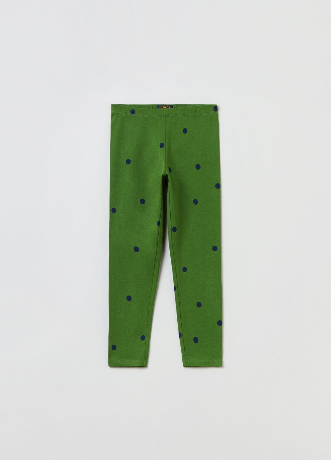 بنطال ضيق من القطن القابل للتمدد مع طبعة منقّطة على كامل التصميم. خصر مطاطي.