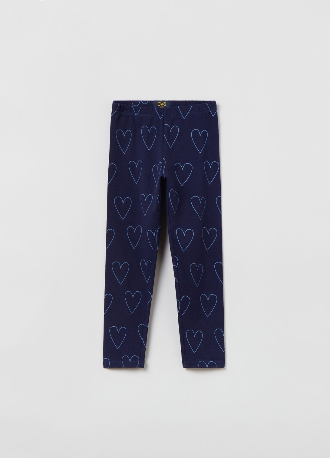 بنطال ضيق من القطن القابل للتمدد مع طبعة قلب على كامل التصميم. خصر مطاطي.