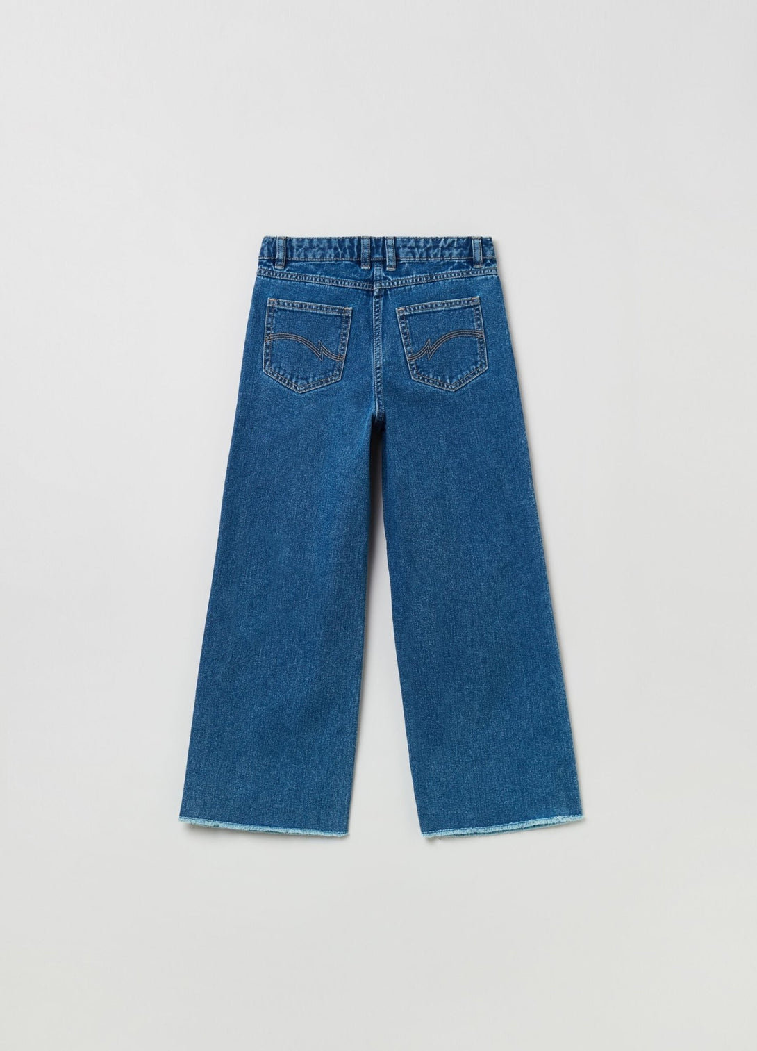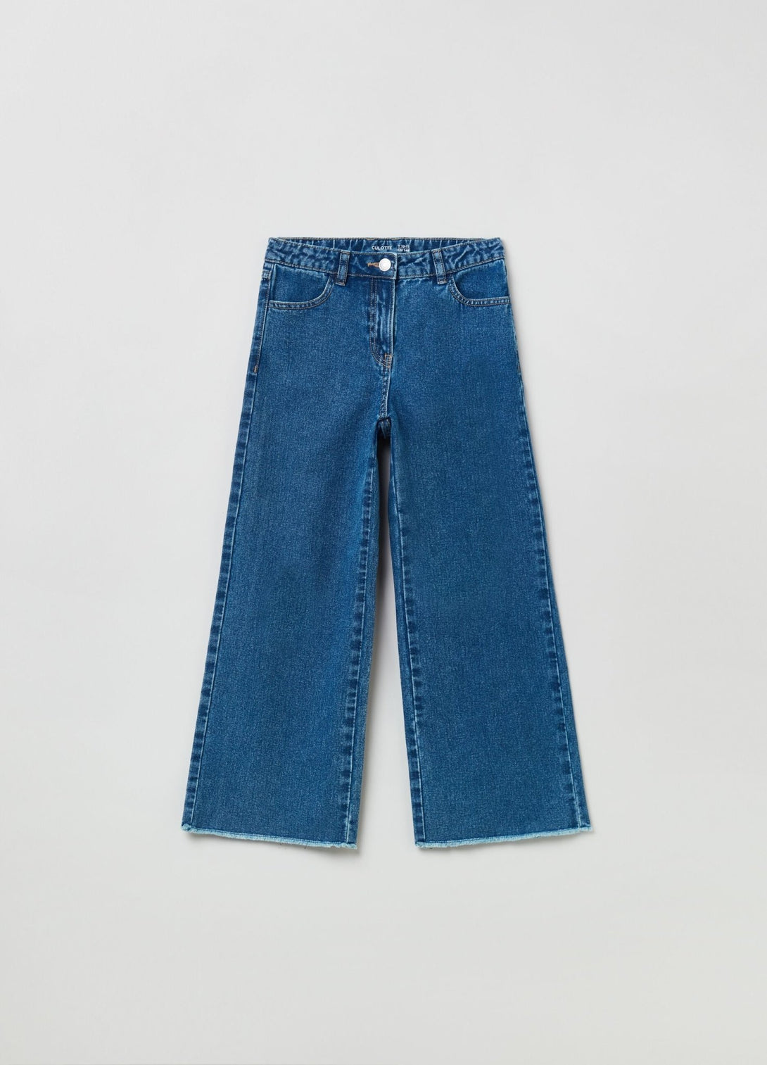 بنطال جينز كولوت مصنوع من القطن بنسبة 100%. جيبان أماميان وجيبان خارجيان في الخلف. إغلاق بواسطة سحّاب وزر. حاشية مهترئة.