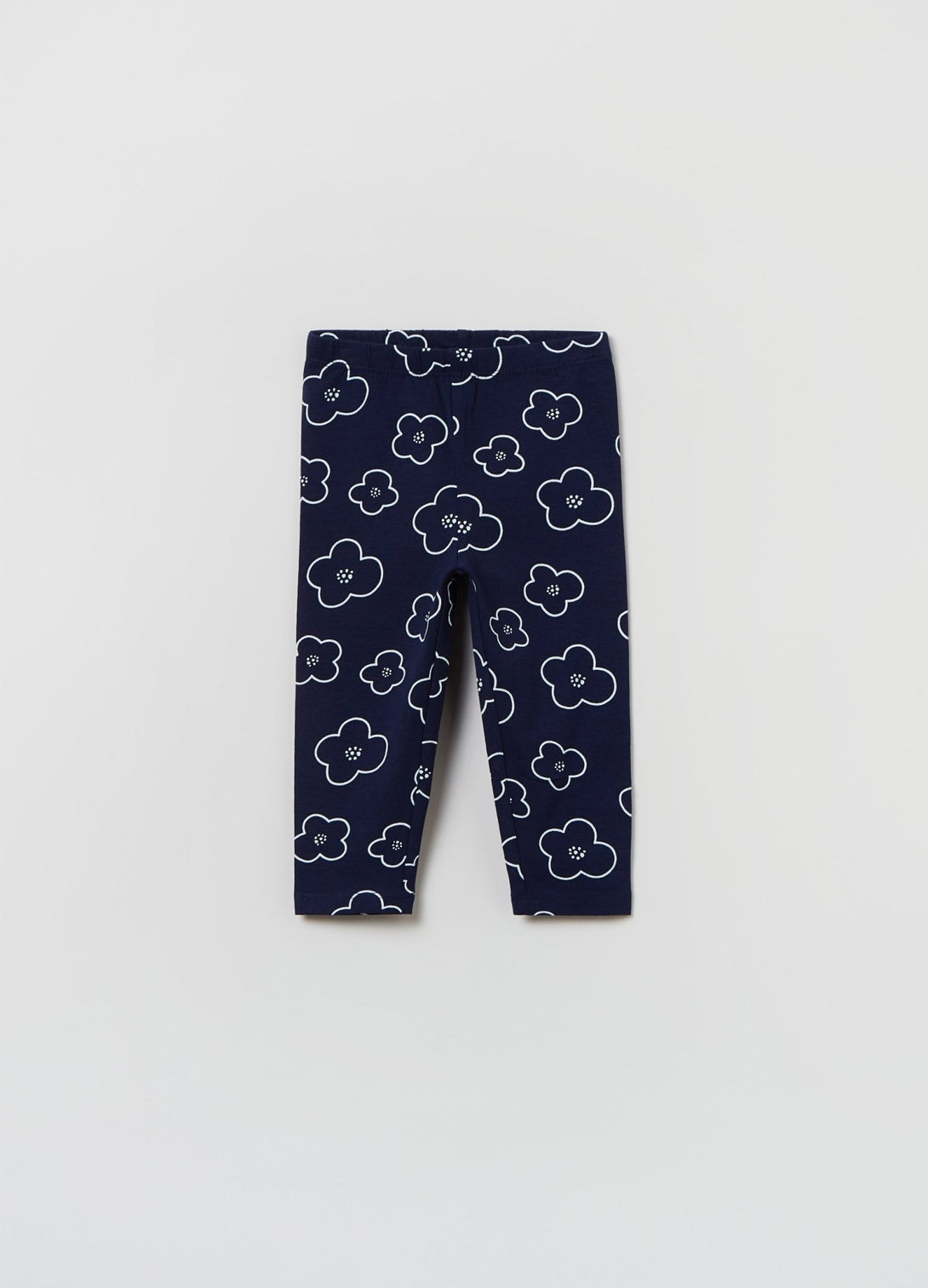 سروال ضيق من القطن المطاطي للفتيات الصغيرات من OVS مع طباعة الأزهار