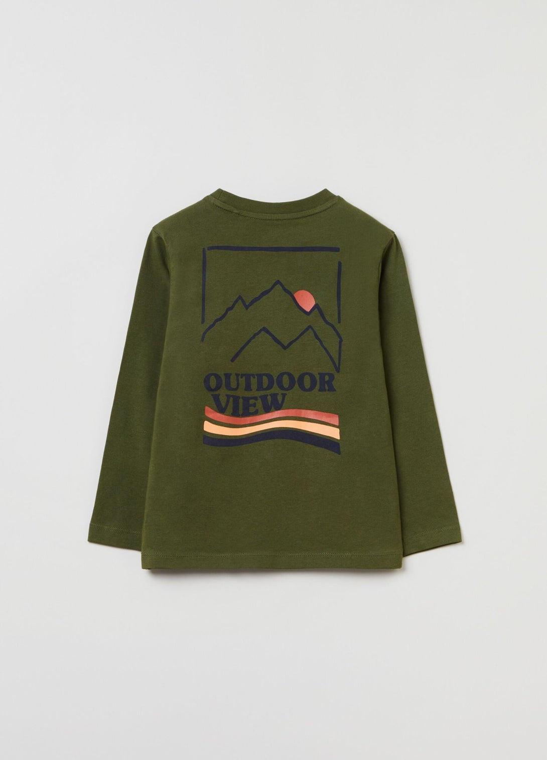 تي شيرت مصنوع من القطن بنسبة 100% بأكمام طويلة. رقبة مستديرة. طباعة الحروف على الصدر والجبال على الظهر.