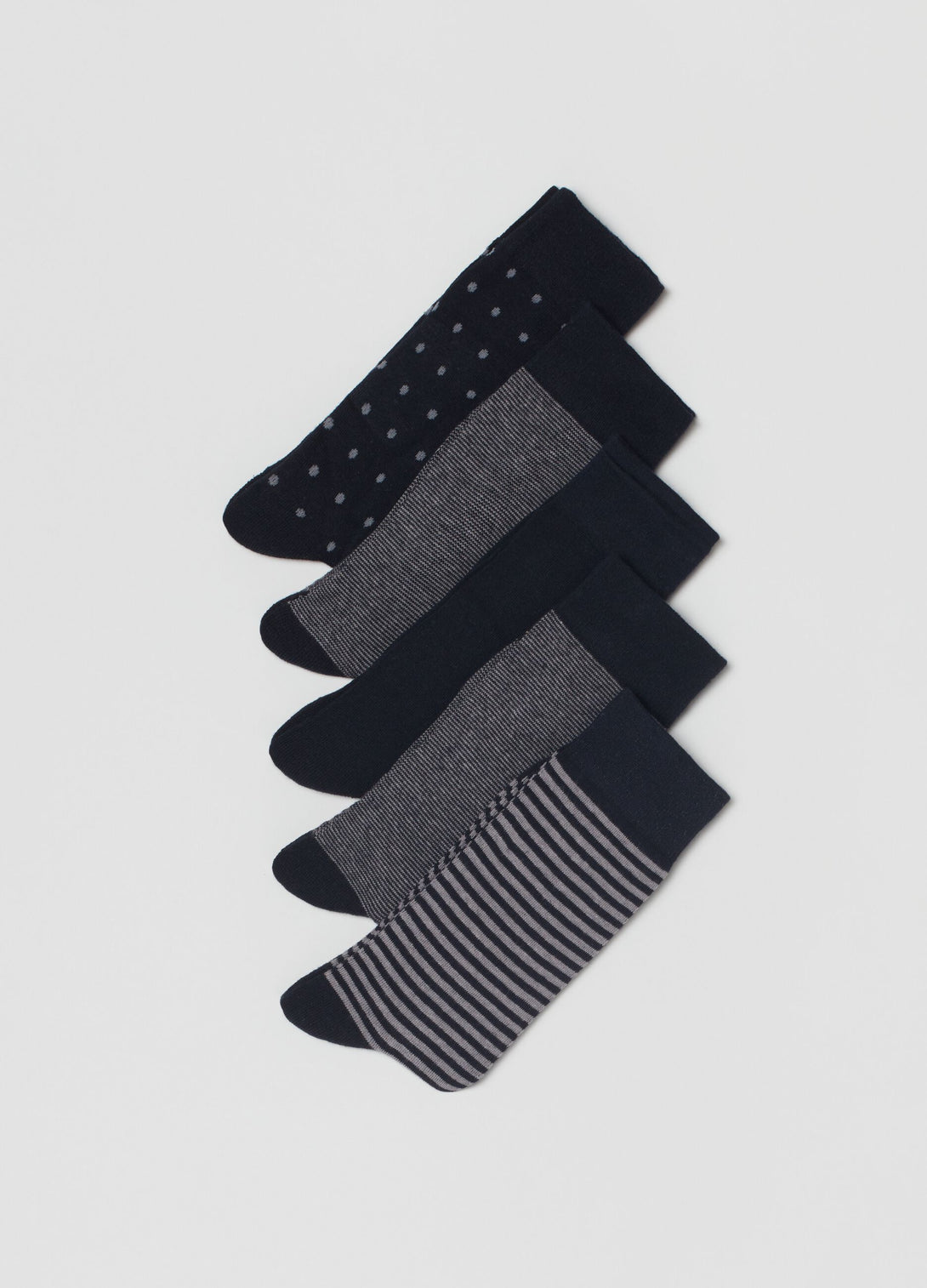 مجموعة تتكون من خمسة أزواج من الجوارب متوسطة الطول من مزيج القطن القابل للتمدد مع خطوط ونقاط البولكا.