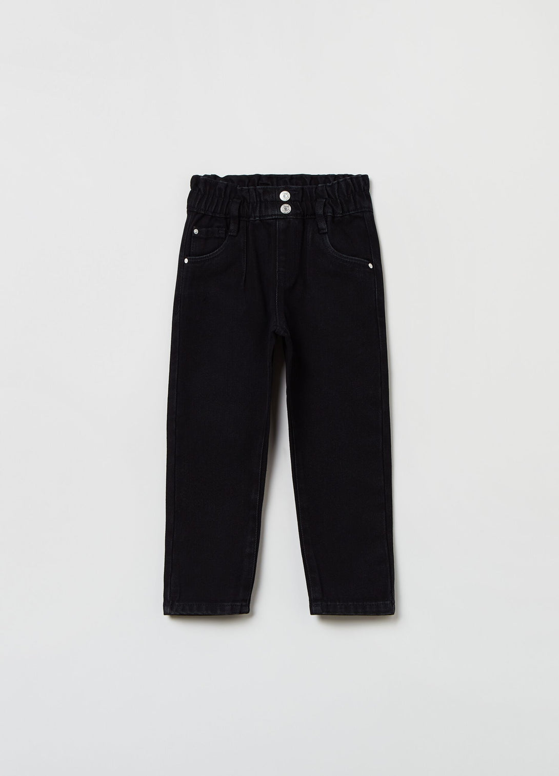 بنطال جينز بكيس ورقي من مزيج القطن. خصر مطاطي. خمسة جيوب. إغلاق بواسطة سحّاب وزر.