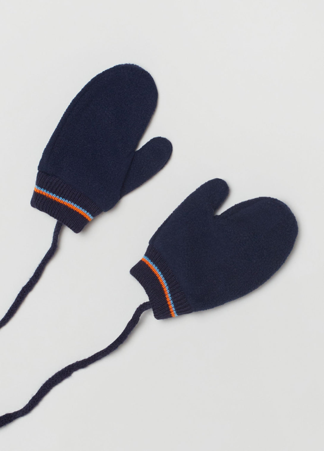 قفازات الصوف مع الحبل. أساور مضلّعة بخطوط متعددة الألوان.
