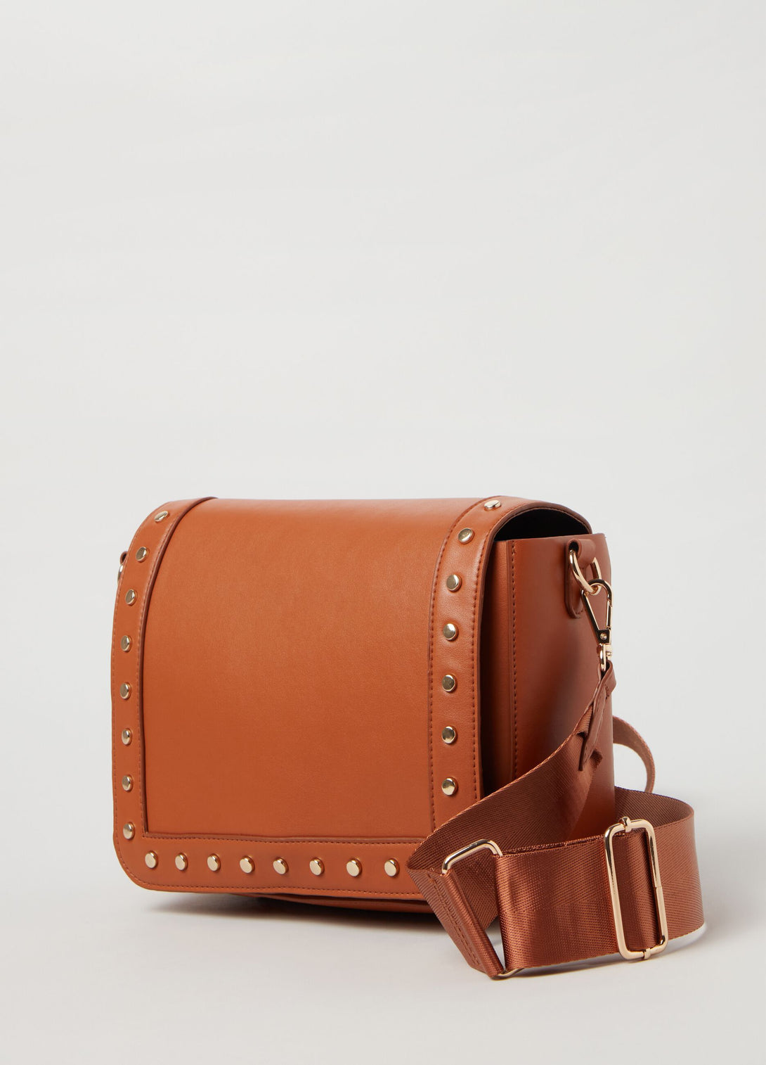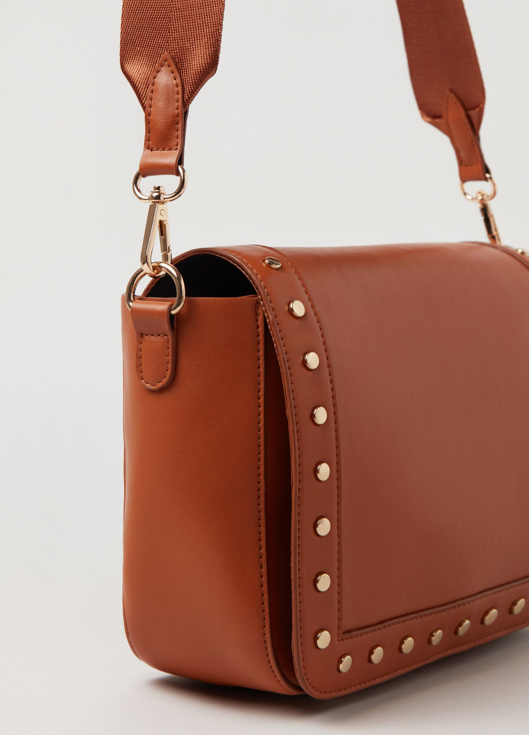 حقيبة مستطيلة بحزام قابل للتعديل. رفرف مزين بالأزرار.