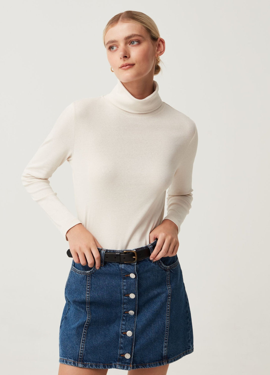 تيشيرت OVS بأكمام طويلة وياقة عالية