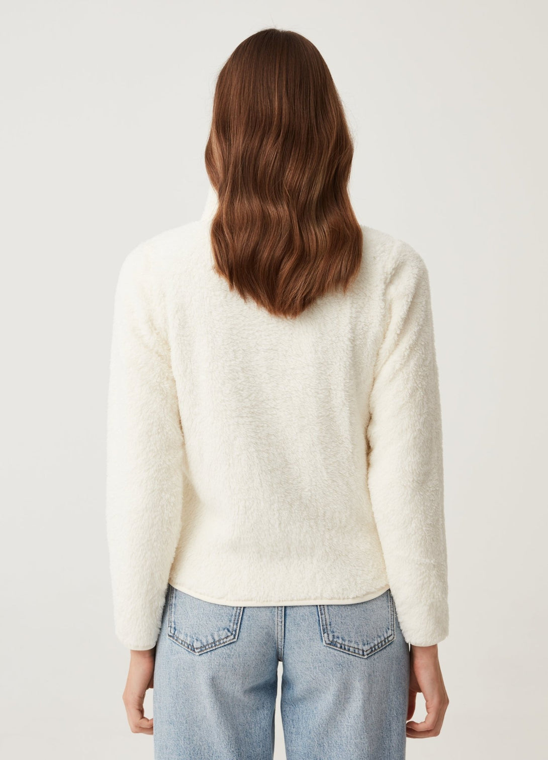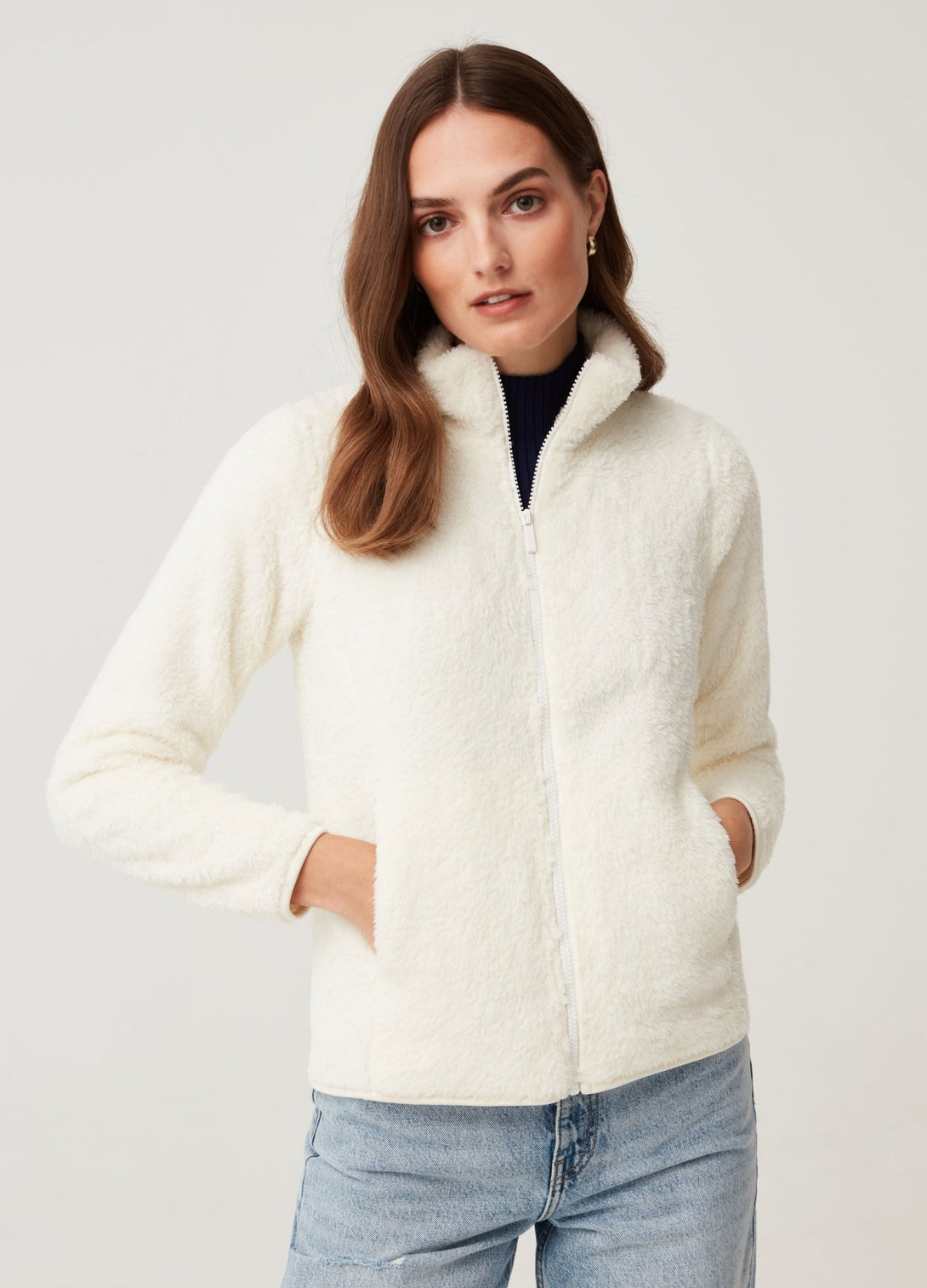جاكيت نسائي من الفرو الصناعي وسحّاب كامل برقبة عالية من OVS
