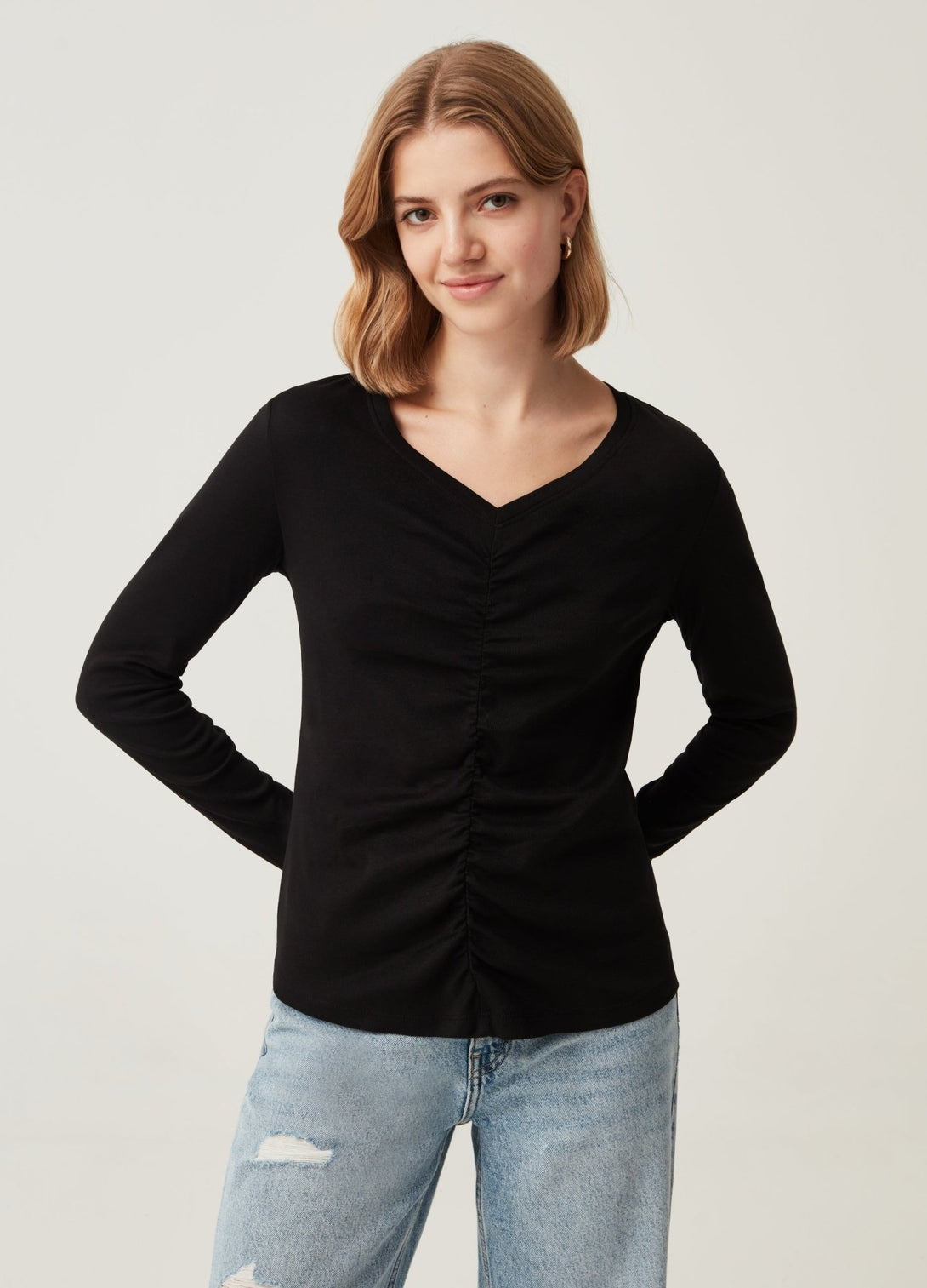 تي شيرت نسائي من OVS برقبة على شكل حرف V مناسب للارتداء