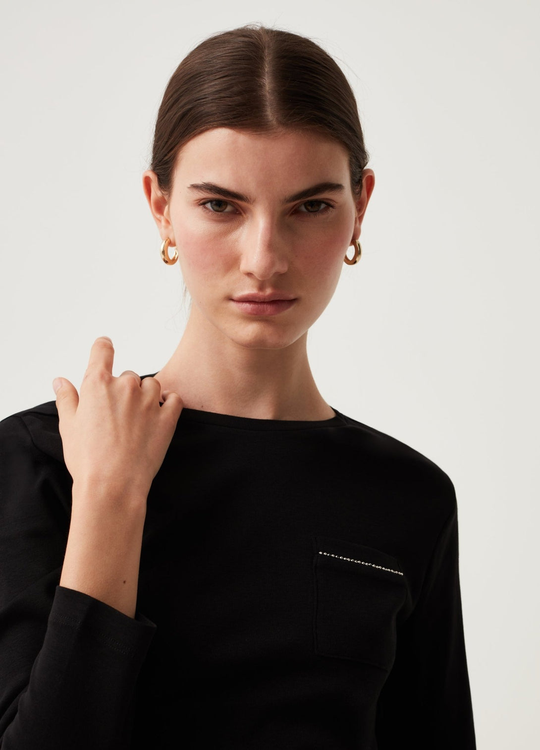 تي شيرت نسائي بأكمام طويلة من OVS مع جيب