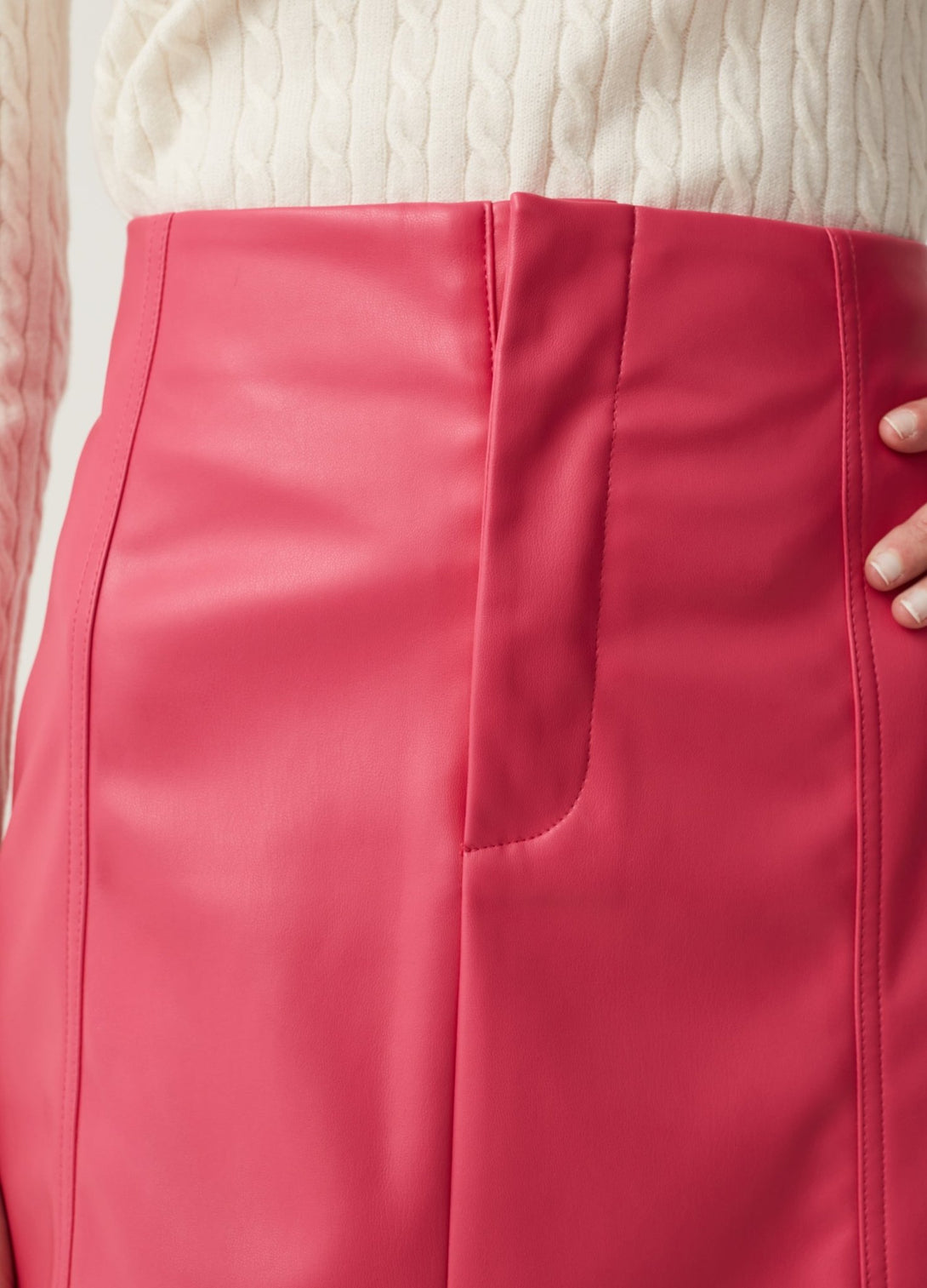 Solid colour miniskirt with shiny effect. High waist. Concealed fastening with zip and hook. Matching jacket available.