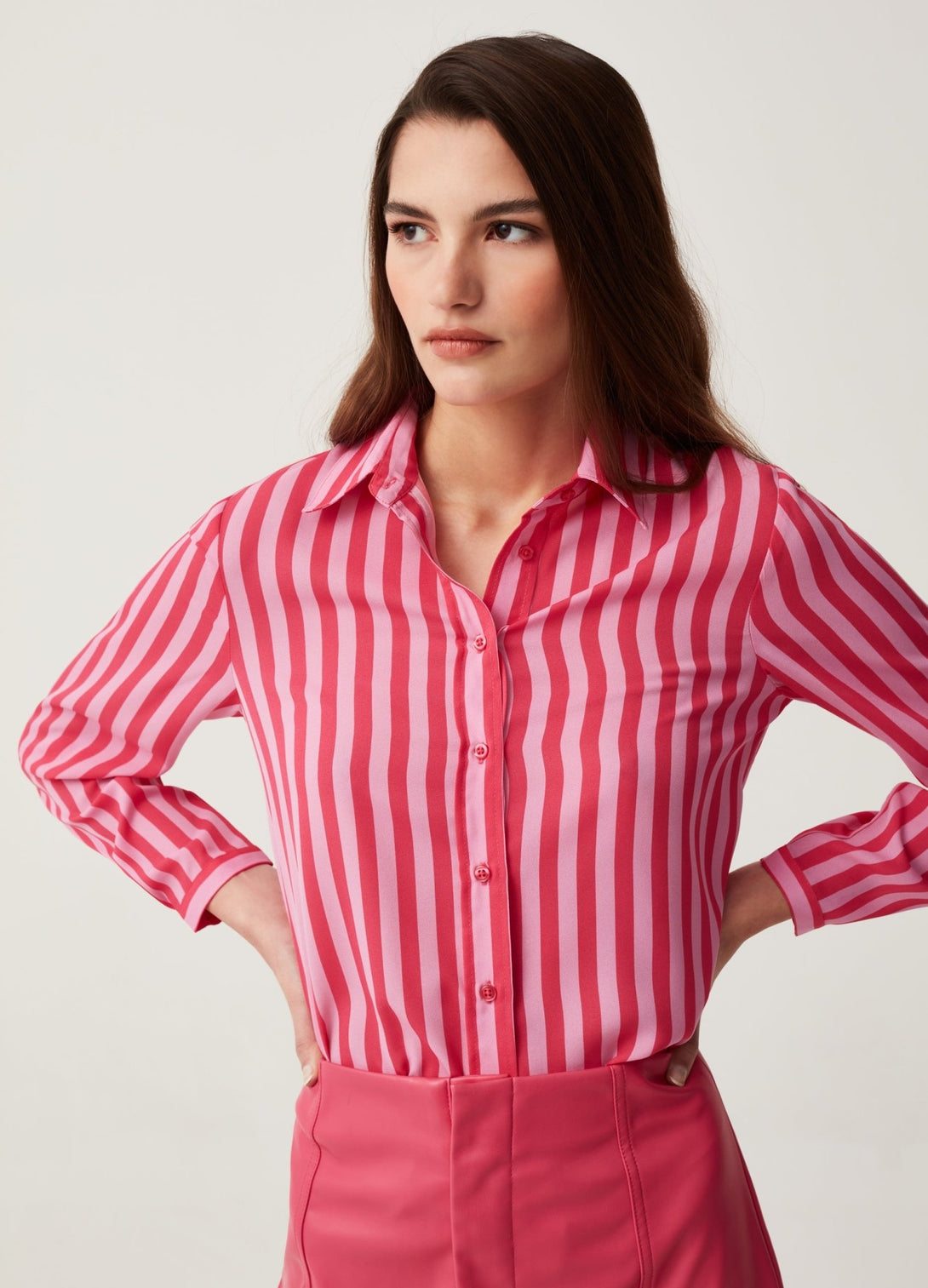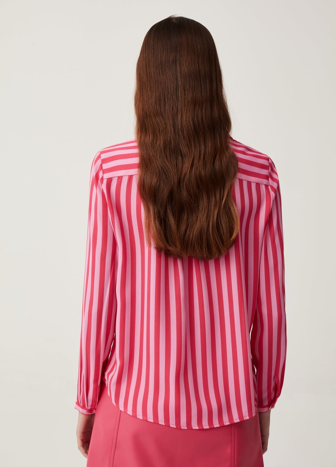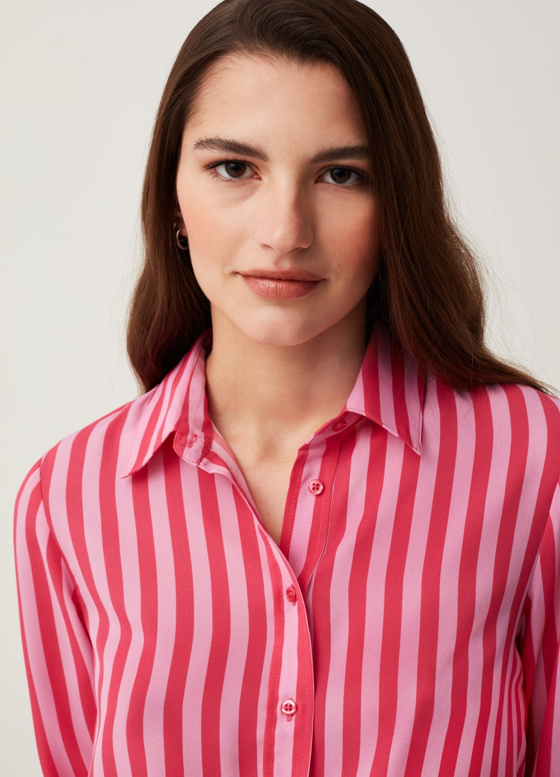Shirt in recycled polyester with all-over striped print. Bluff collar. Button fastening.