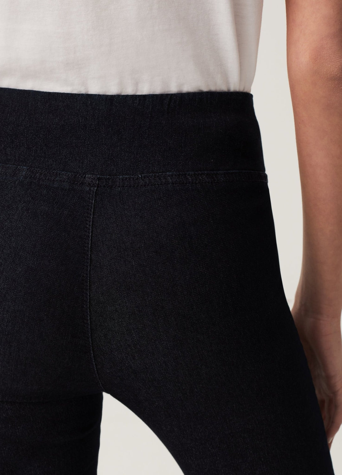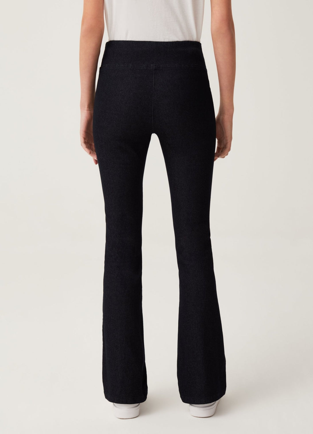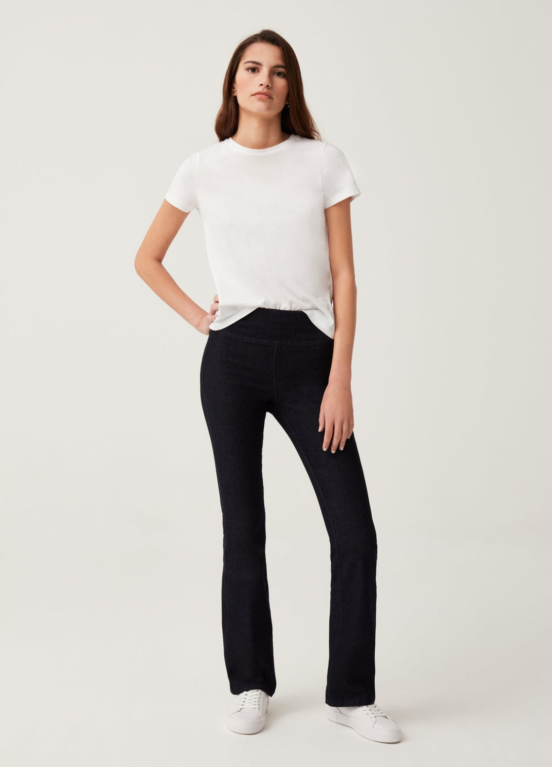Flare-fit jeggings in stretch cotton blend. High rise elastic waist.
