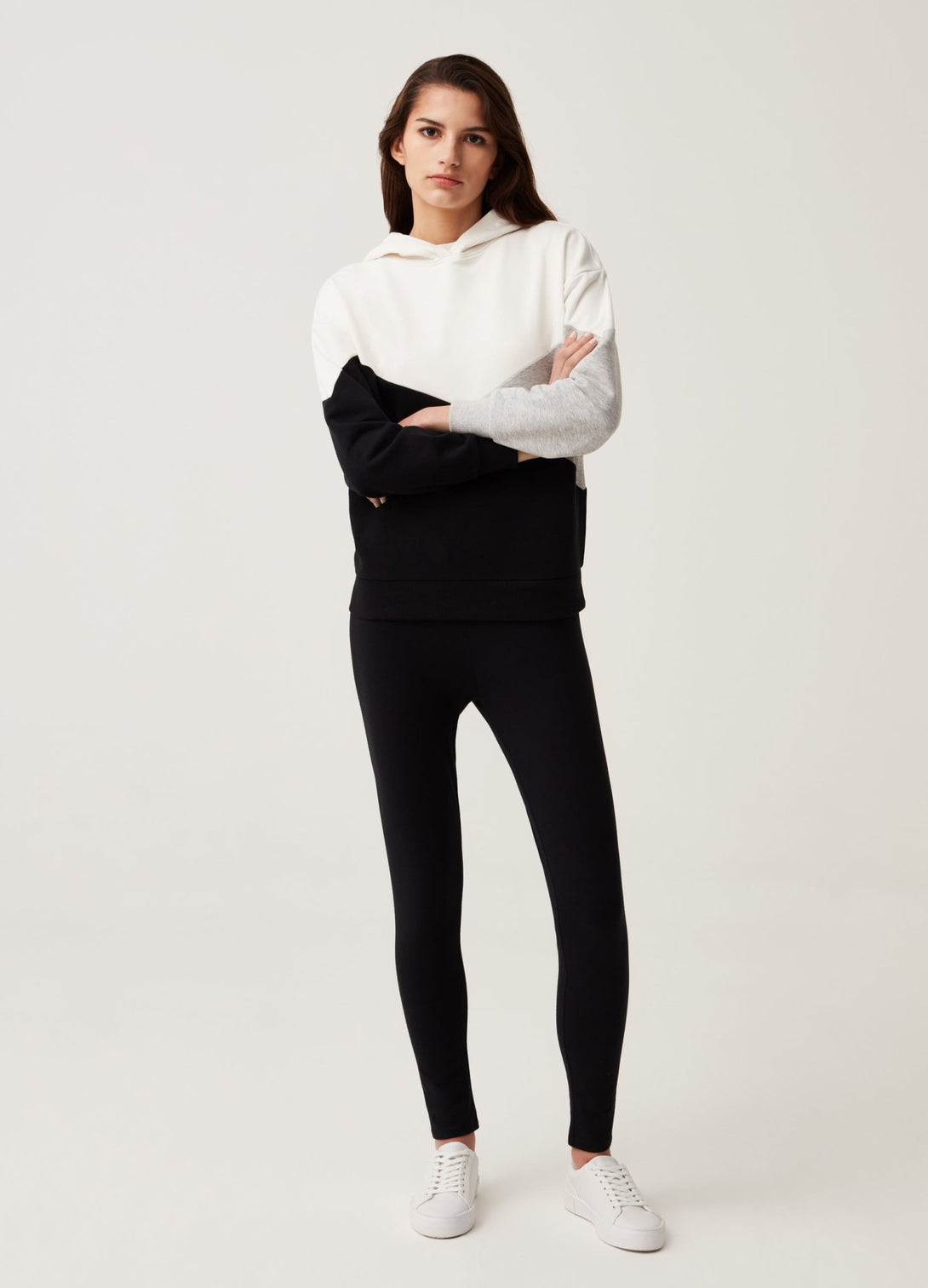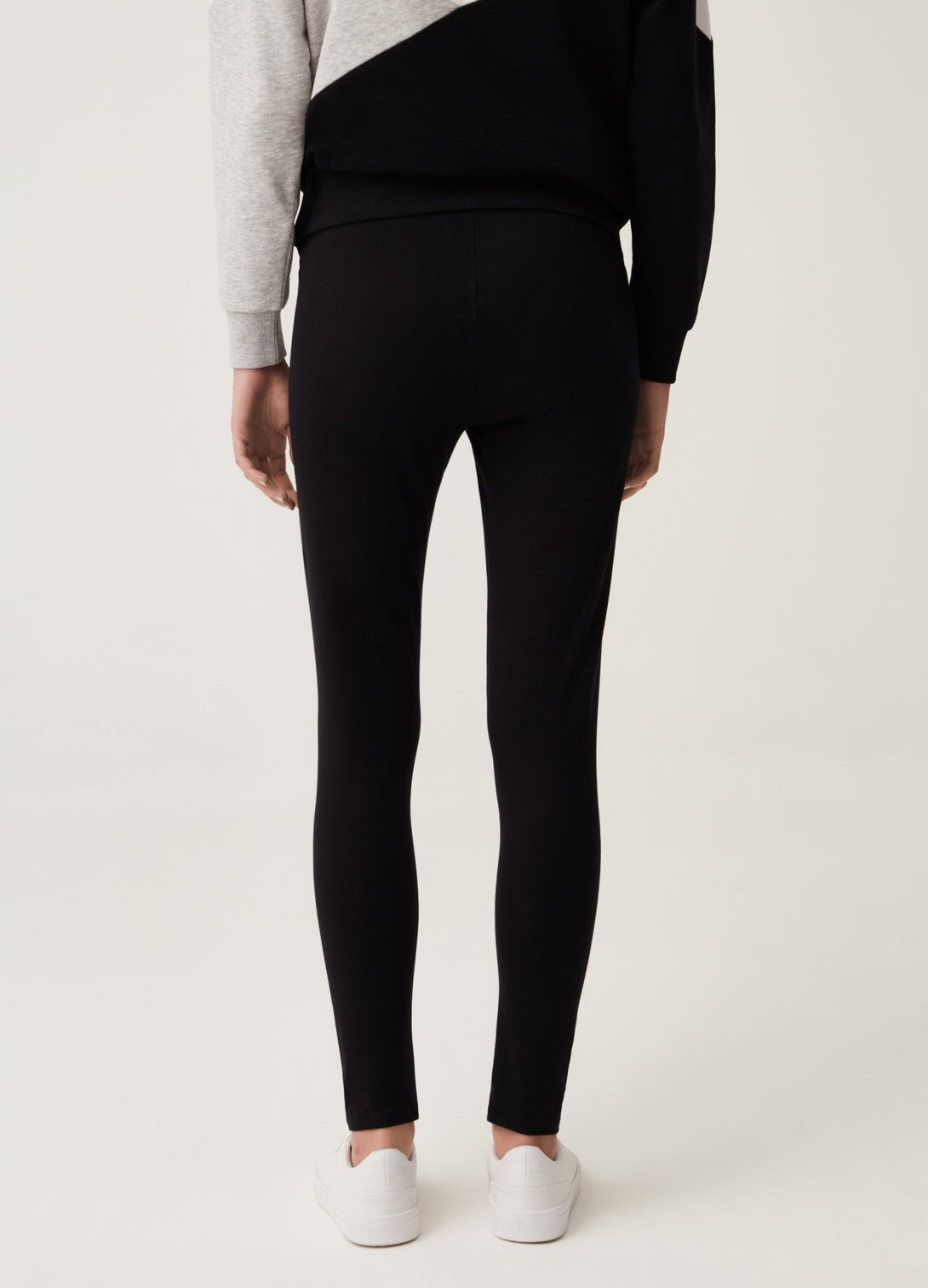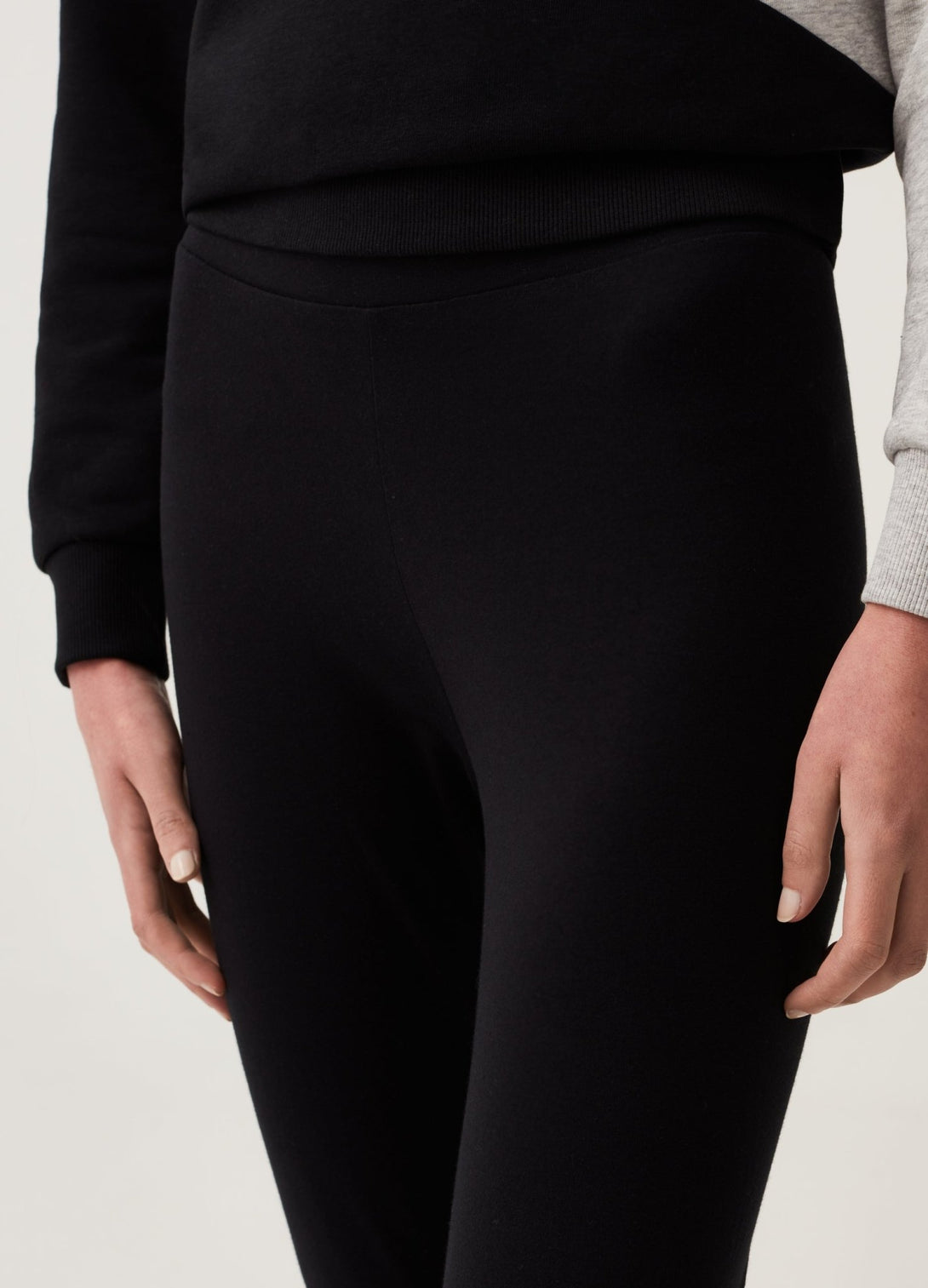 Full-length, solid colour stretch cotton leggings. Elasticated waist.