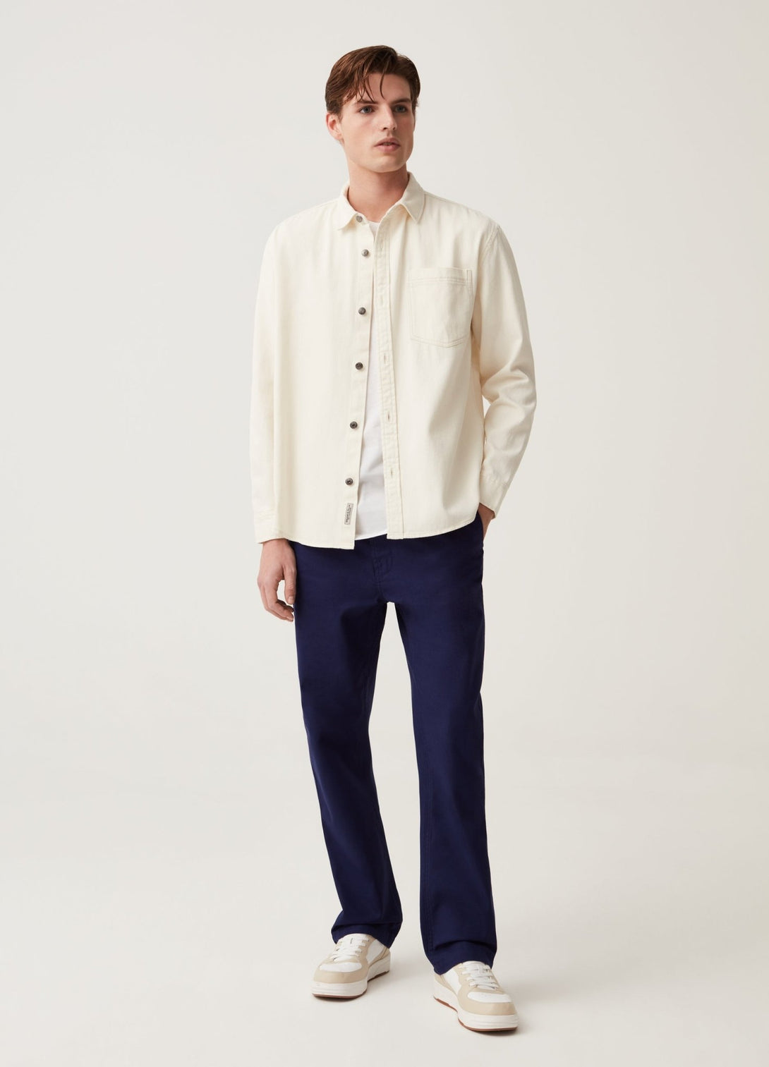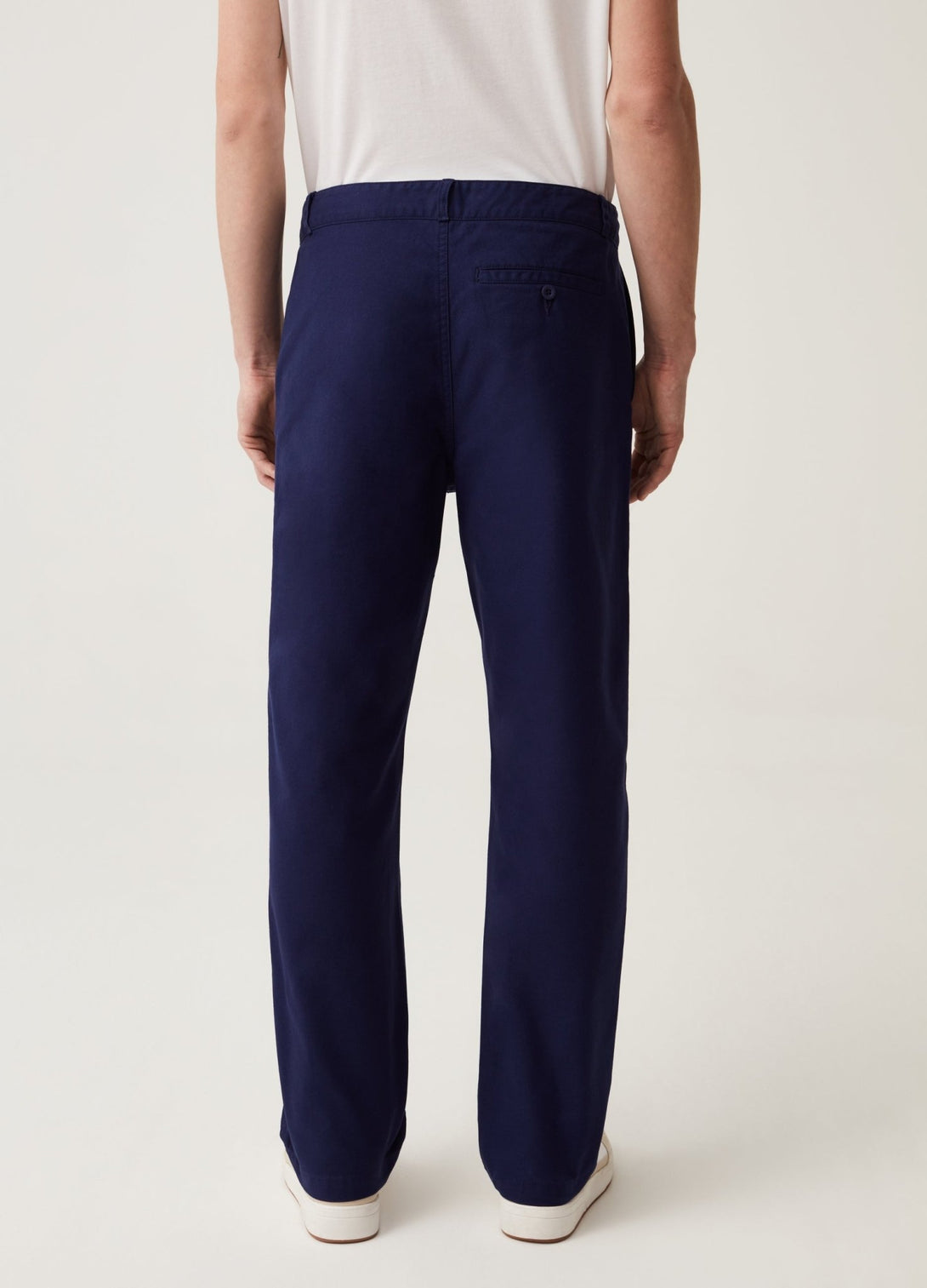 Grand & Hills solid colour straight fit trousers in 100% cotton Two vertical pockets and one welt pocket with button on the back. Zip and off-centre button fastening.