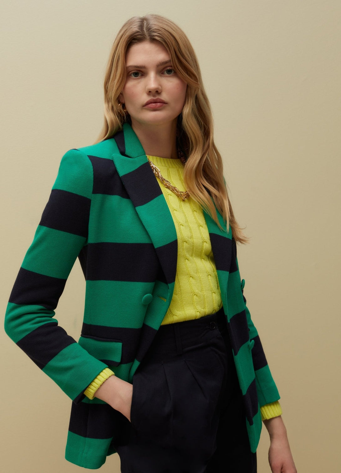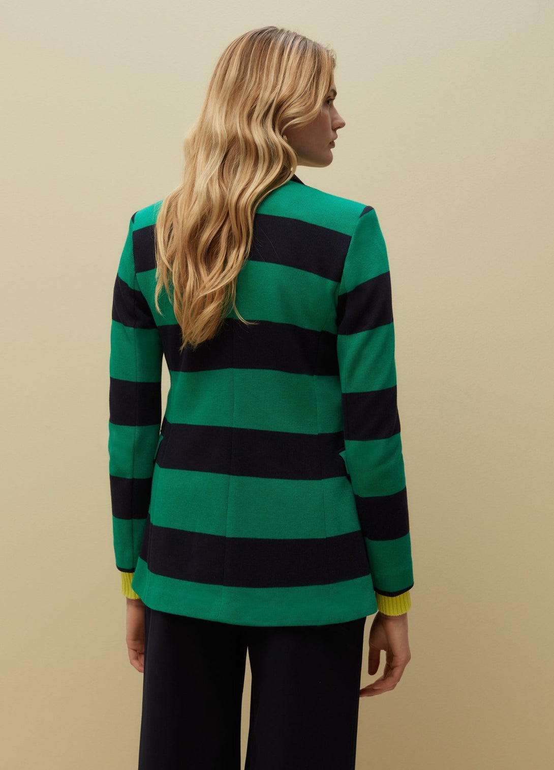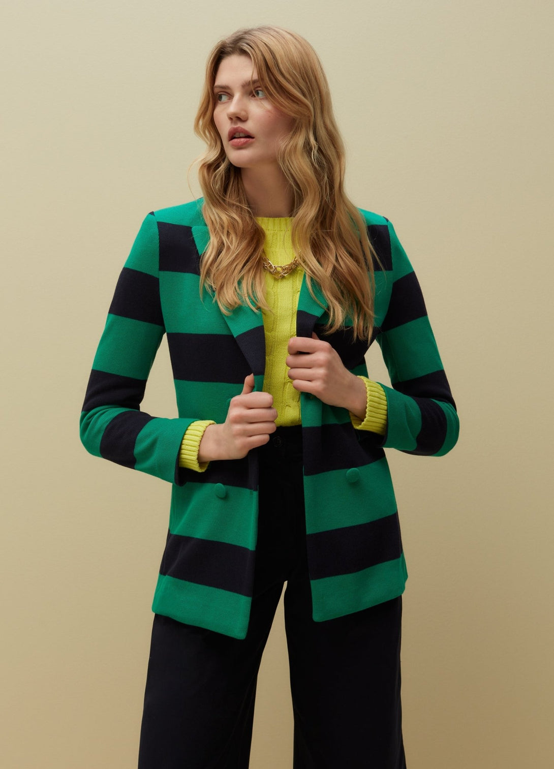 PIOMBO double-breasted blazer with striped pattern in cotton blend. Two side pockets with flap. Covered button fastening.