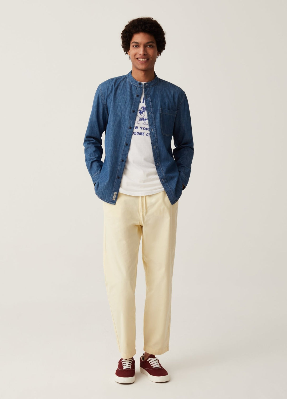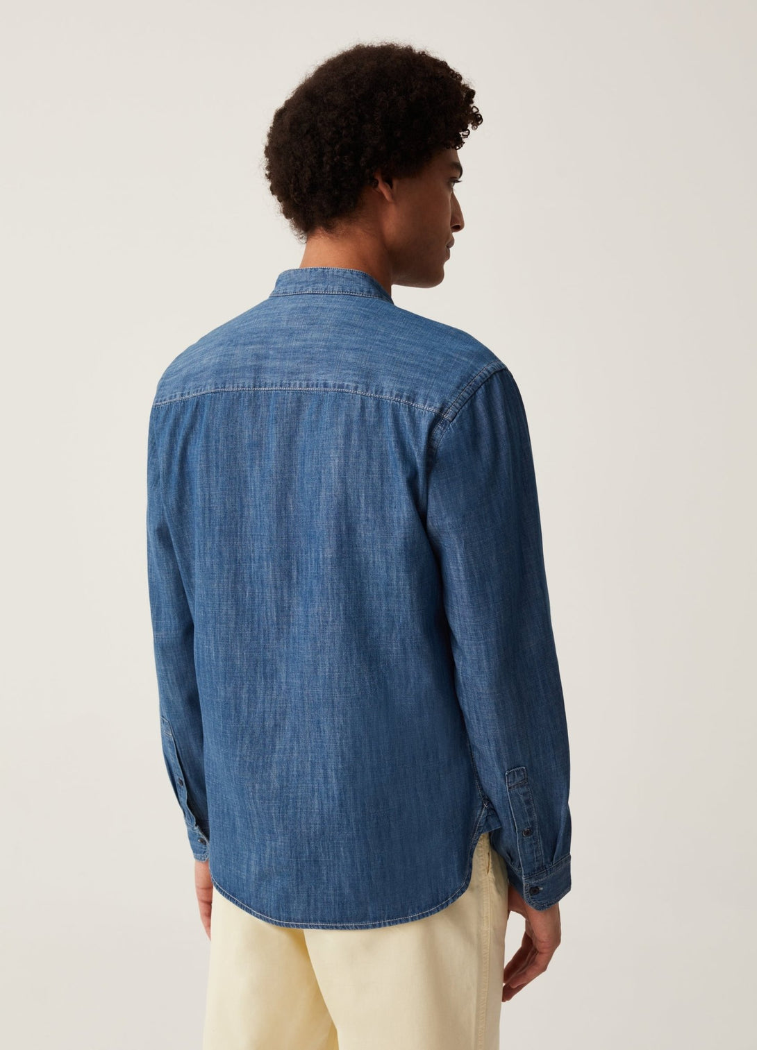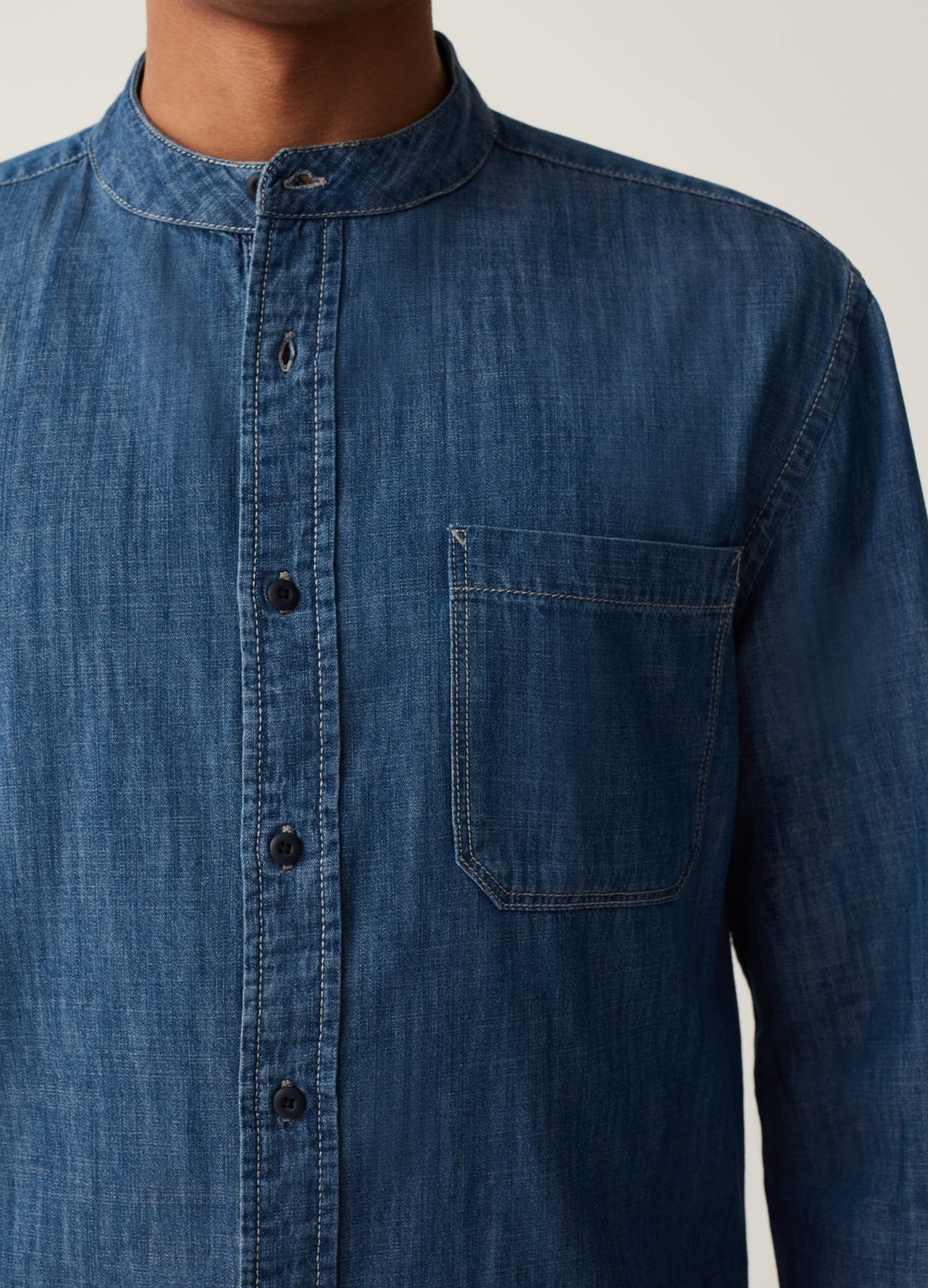Grand&Hills regular-fit shirt in 100% cotton denim. Mandarin collar. Yoke on the back. Patch pocket on the chest. Button fastening. Made with more sustainably grown cotton.