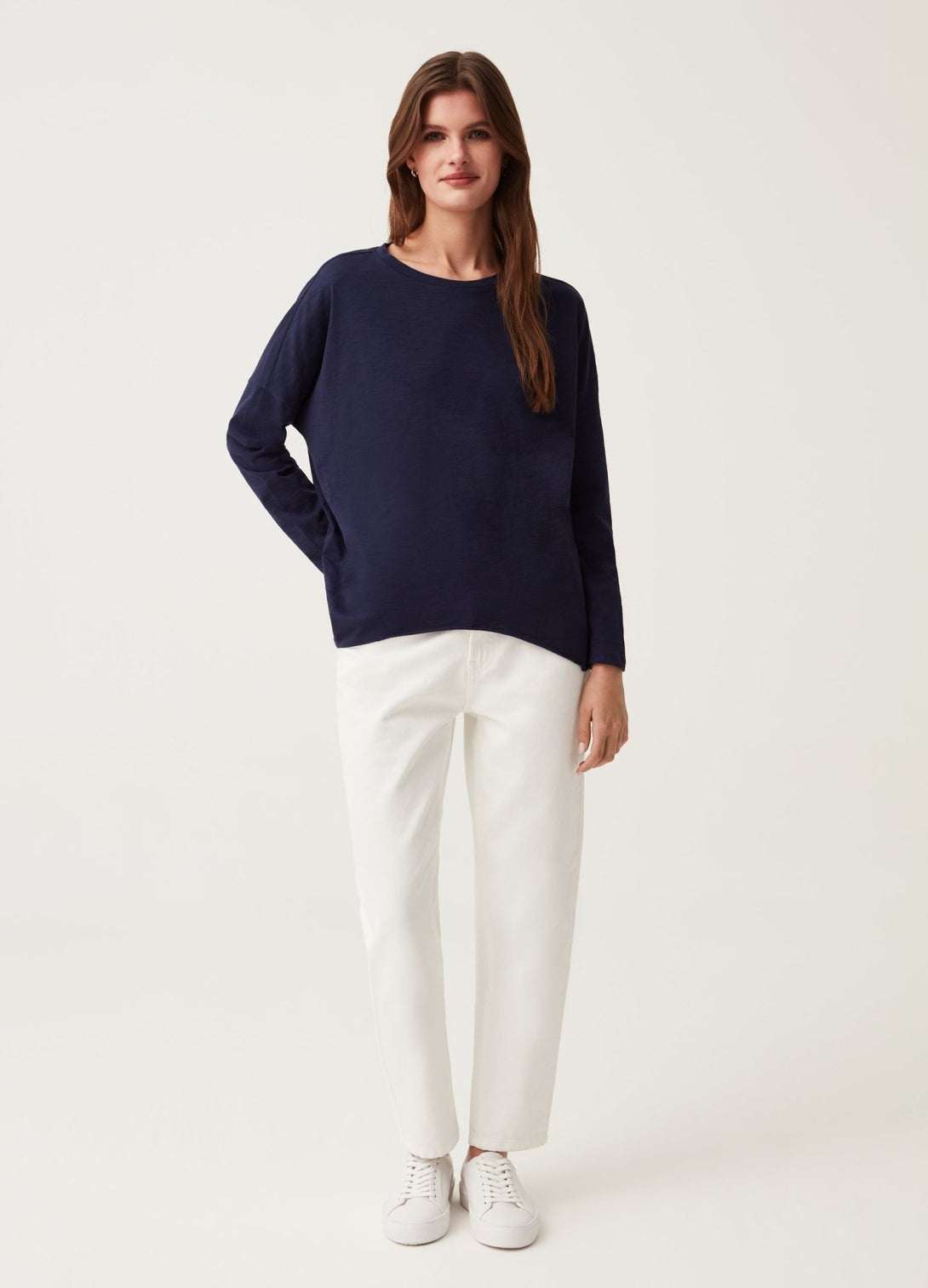 T-shirt in 100% cotton slub. Round neck. Long sleeves with drop shoulders.