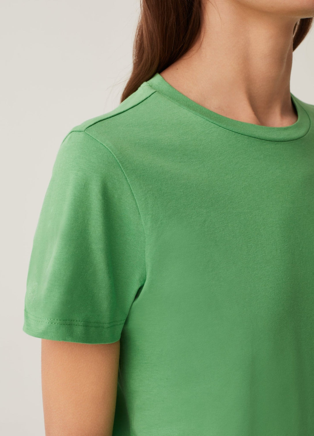 Solid colour 100% cotton T-shirt. Round neck.