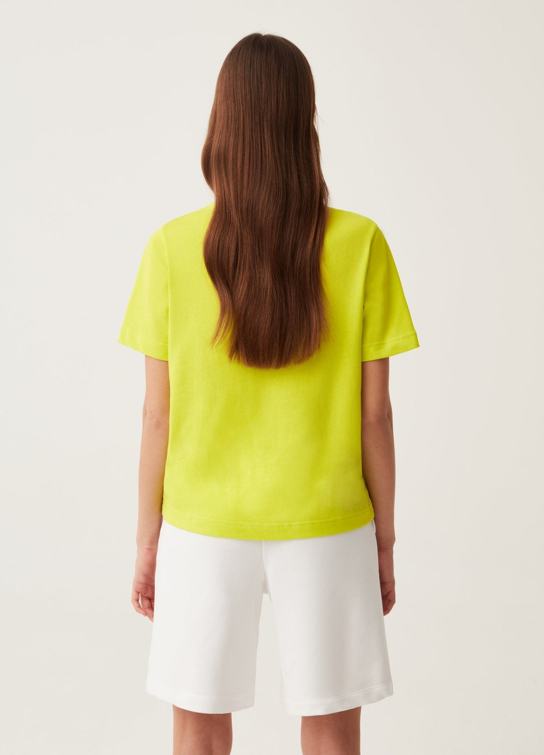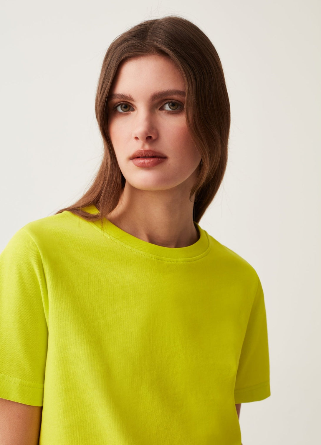 Solid colour 100% cotton T-shirt. Round ribbed neck.
