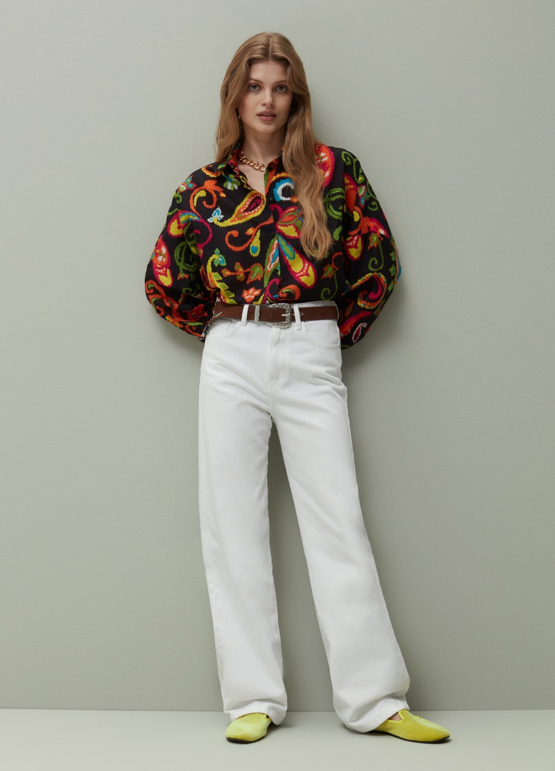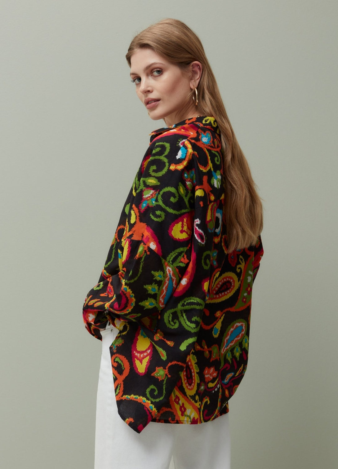 PIOMBO 100% cotton shirt with multicolour paisley print. Bluff collar. Dropped arm openings. Button fastening.