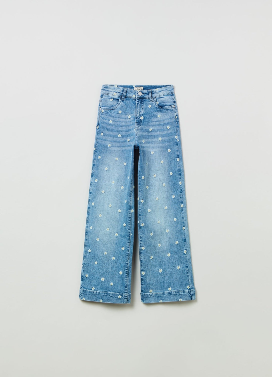 OVS Kids Girl Straight-Fit Jeans With Embroidered Daisies