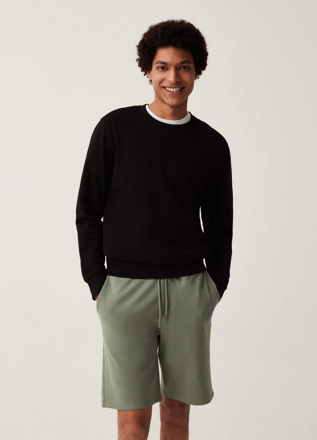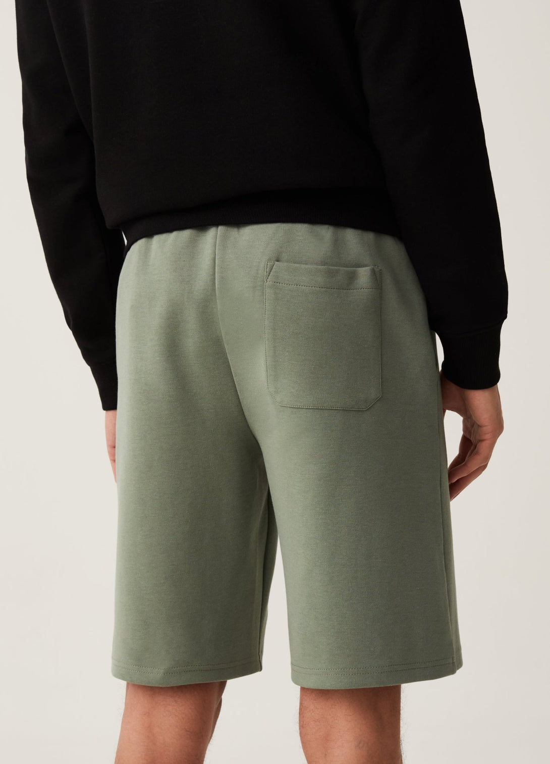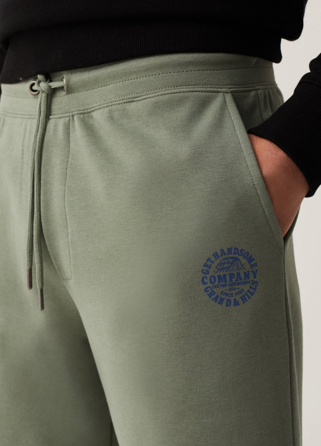 Grand&Hills Bermuda jogging shorts in cotton blend plush Drawstring with metal eyelets. Two slant pockets and one patch pocket on the back. Grand&Hills logo print on the side.