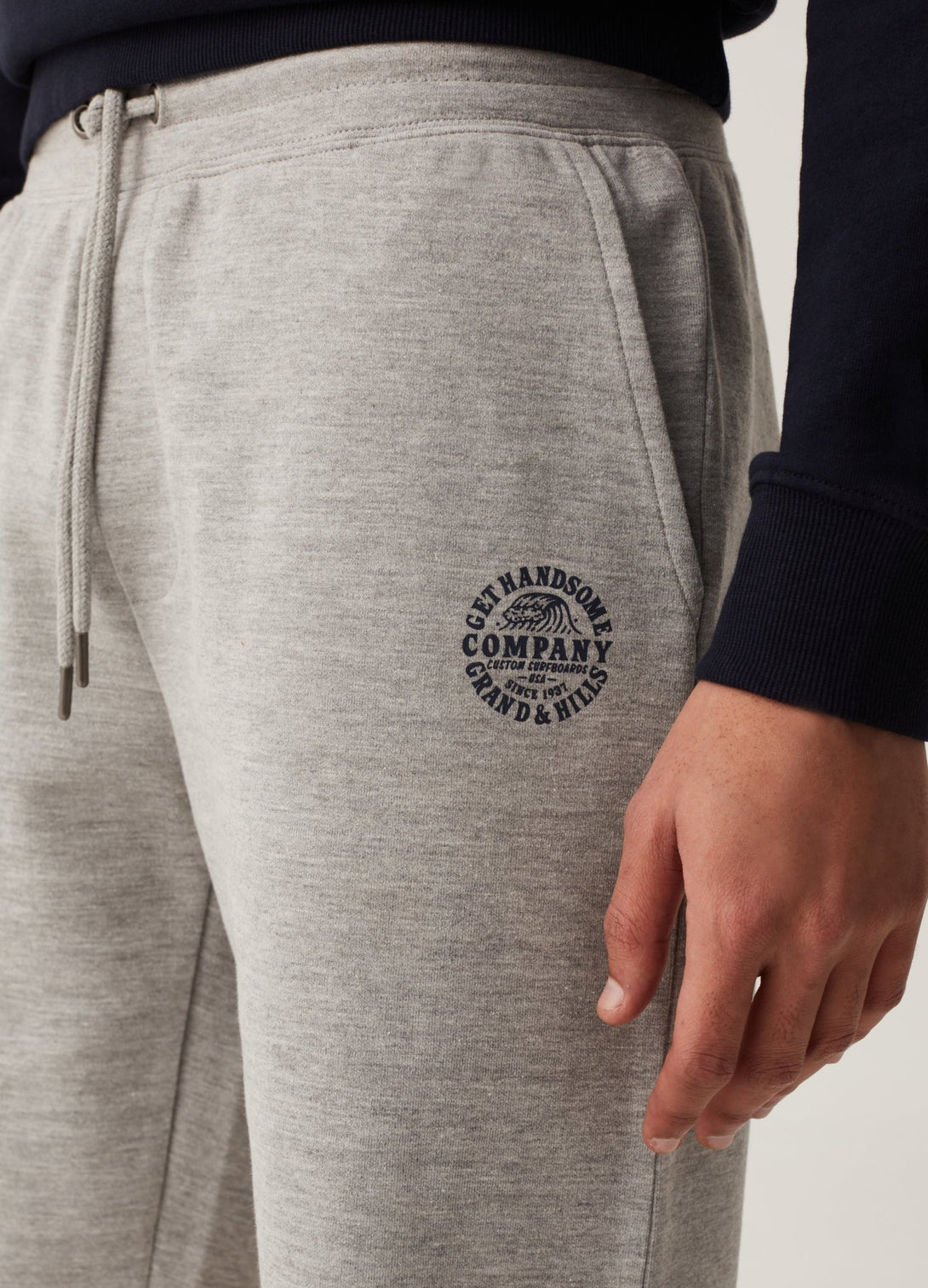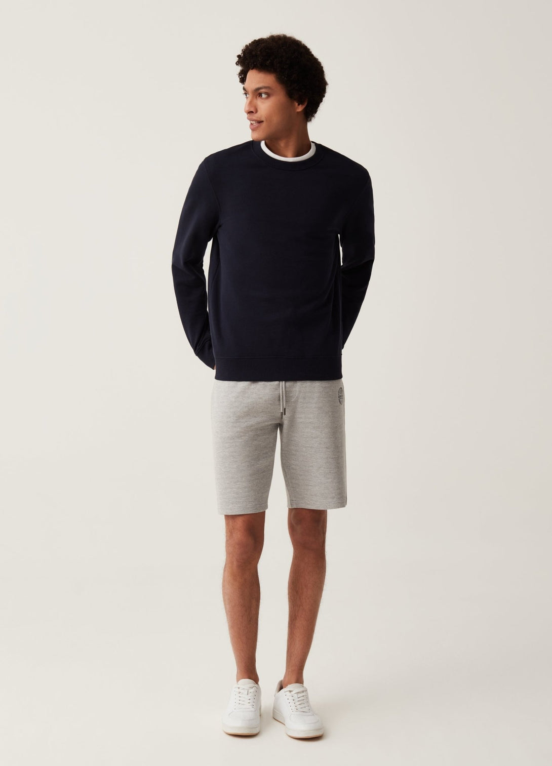 Grand&Hills Bermuda jogging shorts in cotton blend plush Drawstring with metal eyelets. Two slant pockets and one patch pocket on the back. Grand&Hills logo print on the side.