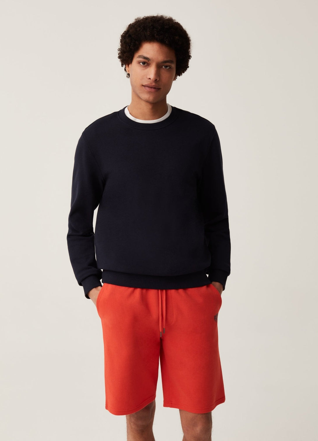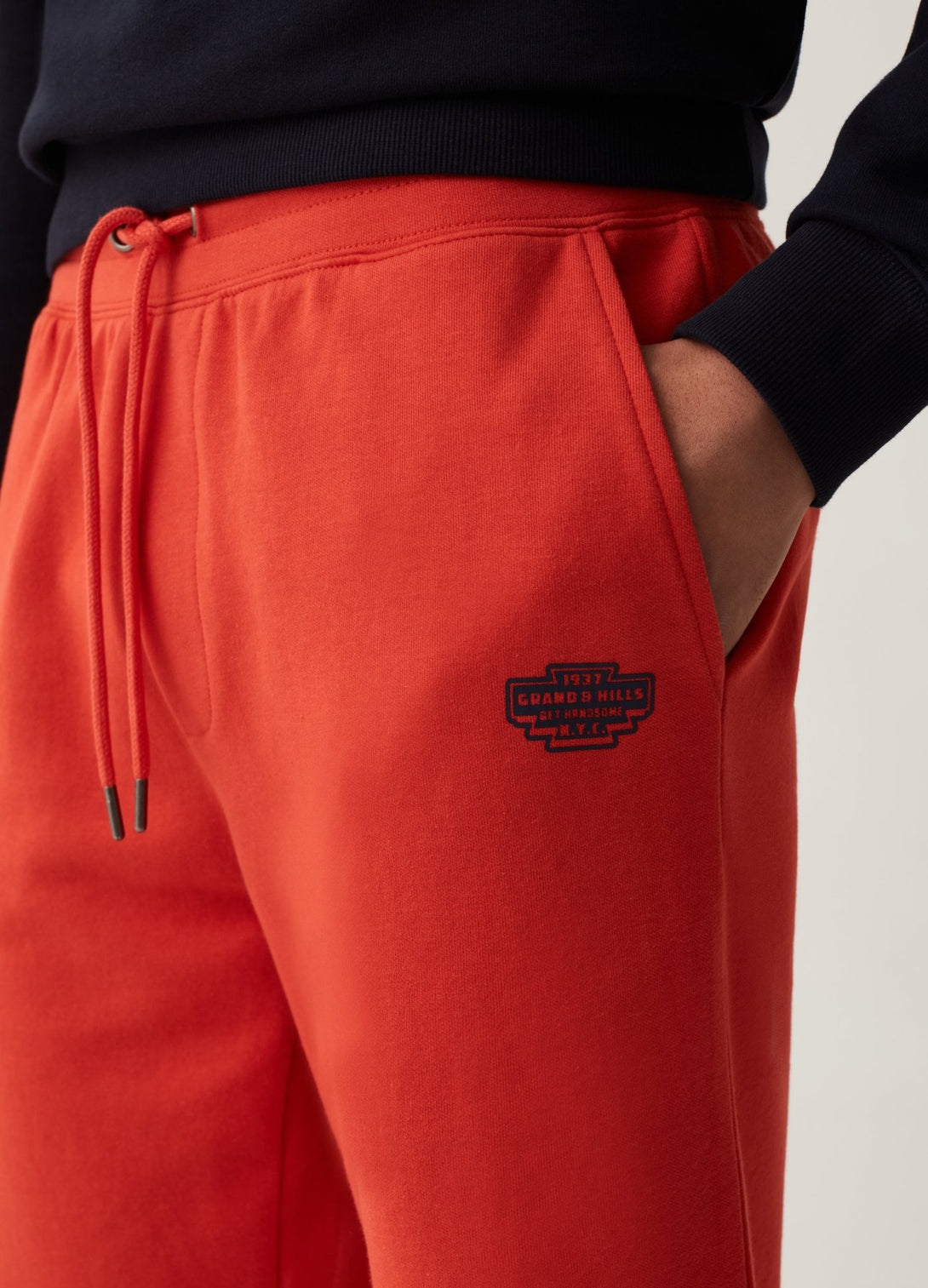 Grand&Hills Bermuda jogging shorts in cotton blend plush Drawstring with metal eyelets. Two slant pockets and one patch pocket on the back. Grand&Hills logo print on the side.