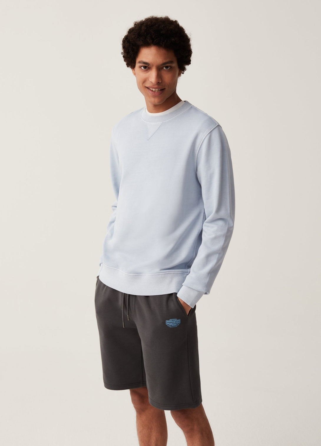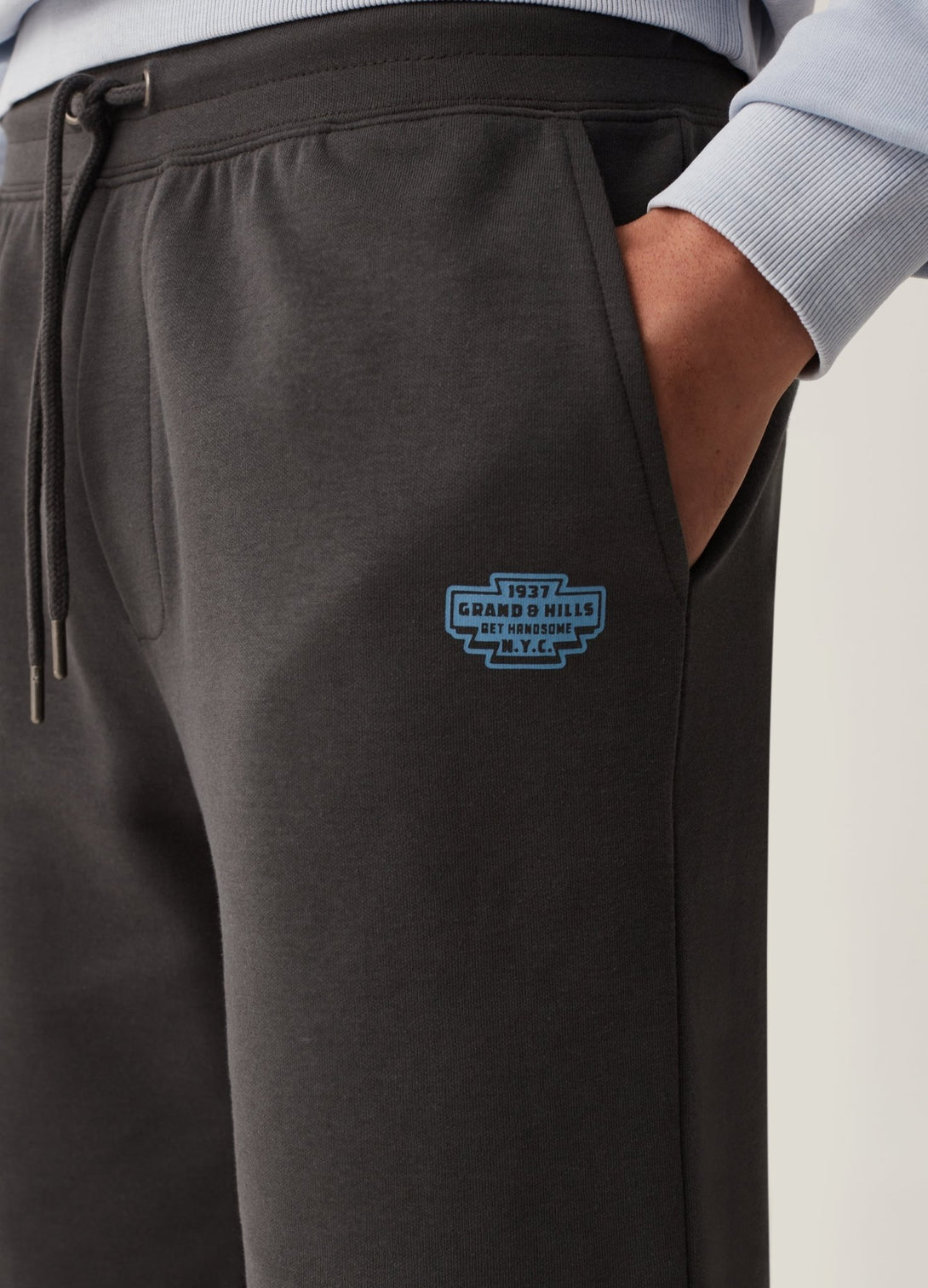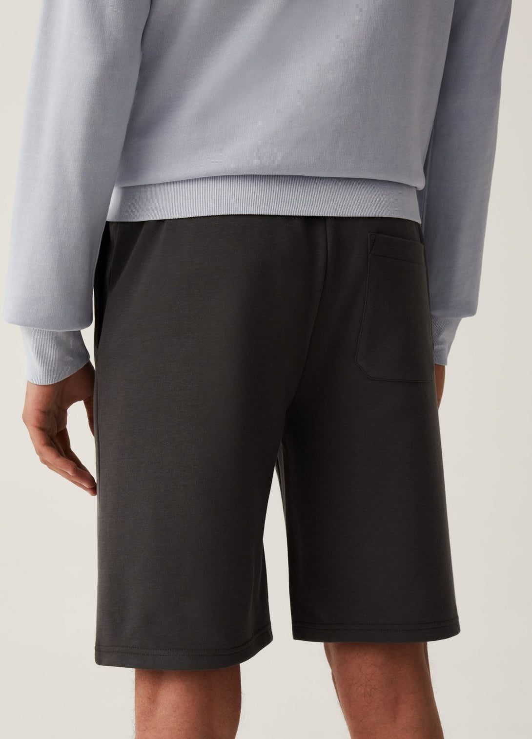 Grand&Hills Bermuda jogging shorts in cotton blend plush Drawstring with metal eyelets. Two slant pockets and one patch pocket on the back. Grand&Hills logo print on the side.